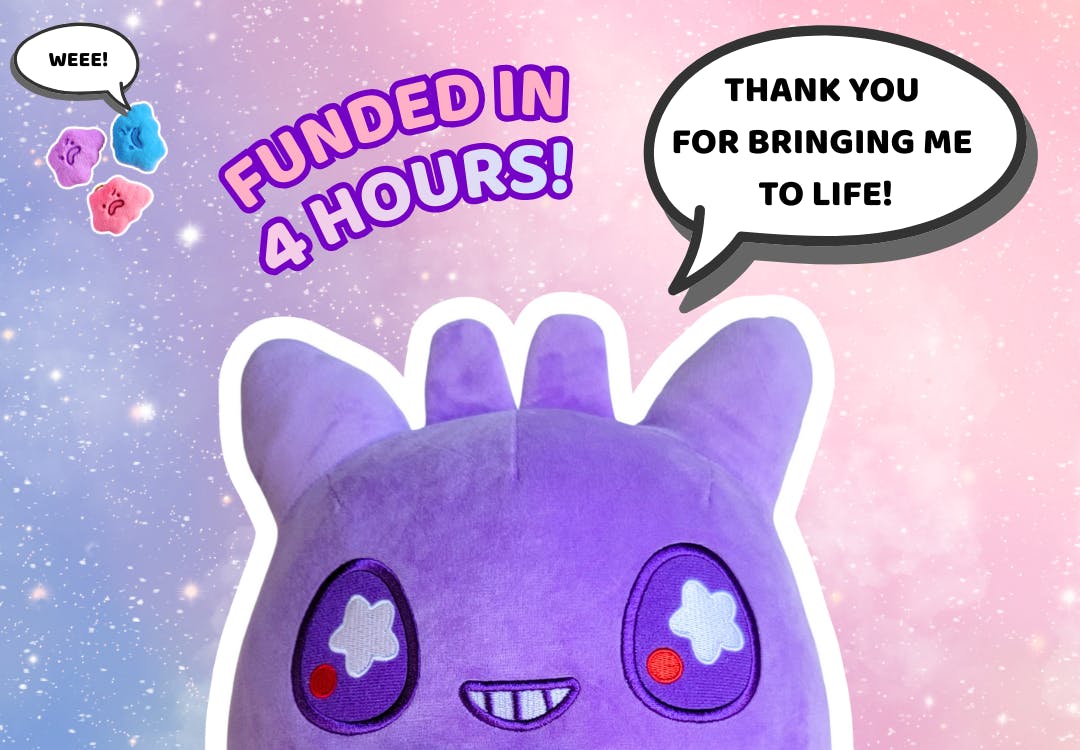The initial $3000 goal was set to cover the big 12" plushies, and I was planning to handle the rest of the manufacturing costs myself. With your extra support, those expenses are now much easier to manage, and I’m incredibly grateful.