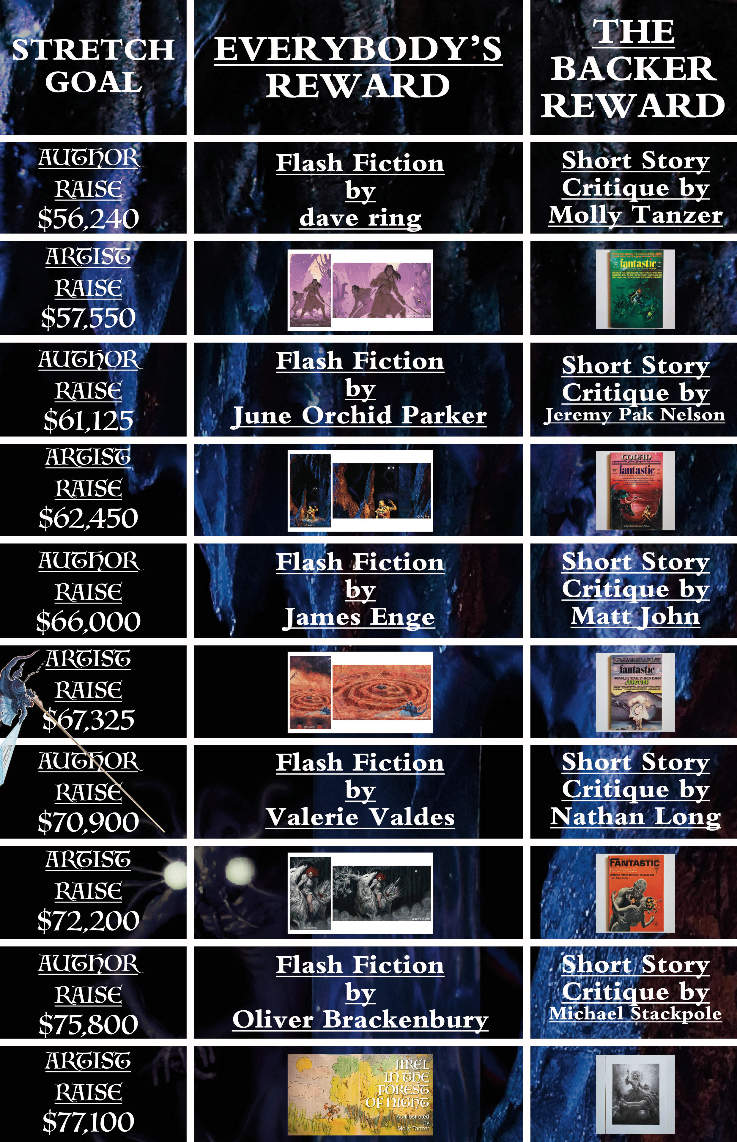 We unlocked every bonus story, piece of flash fiction, digital art background, a bonus poem, and Molly Tanzer's Jirel art booklet!
