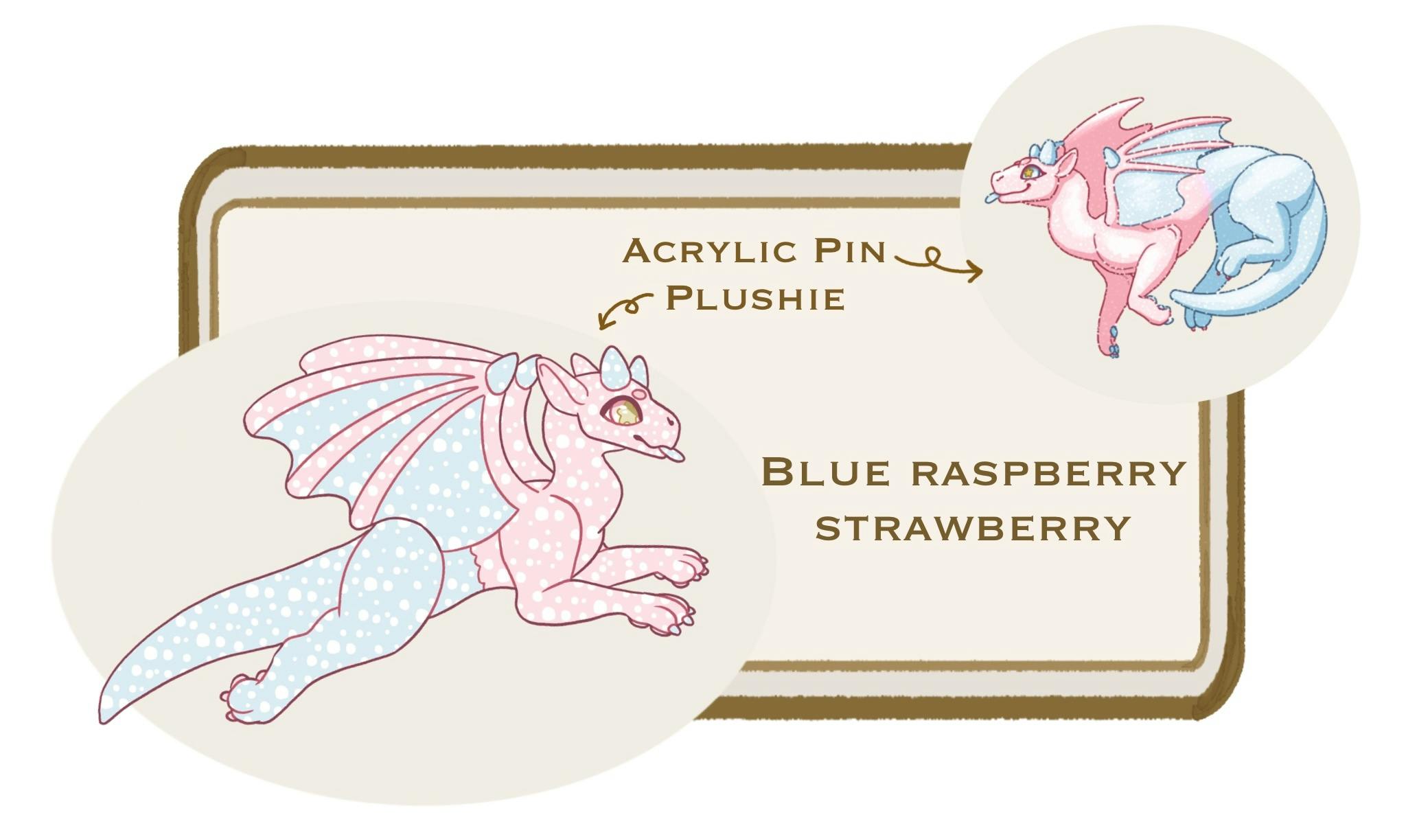 The initial goal is to unlock the first colorway and its matching acrylic pin! The current flavors of wyrm that are available into the stretch goals are: Strawberry Lemonade, Blue Raspberry Strawberry, Grape Blue Raspberry and Green Apple Orange! If all goals are unlocked, it will be up to backers to decide what the next goals should be! ideas include: more flavors, mini version of the four colors or maybe even JUMBOS??? just ideas! Plush Details: 24 inches long, weighted beans, soft toe beans, floppy body, and flappy wings!