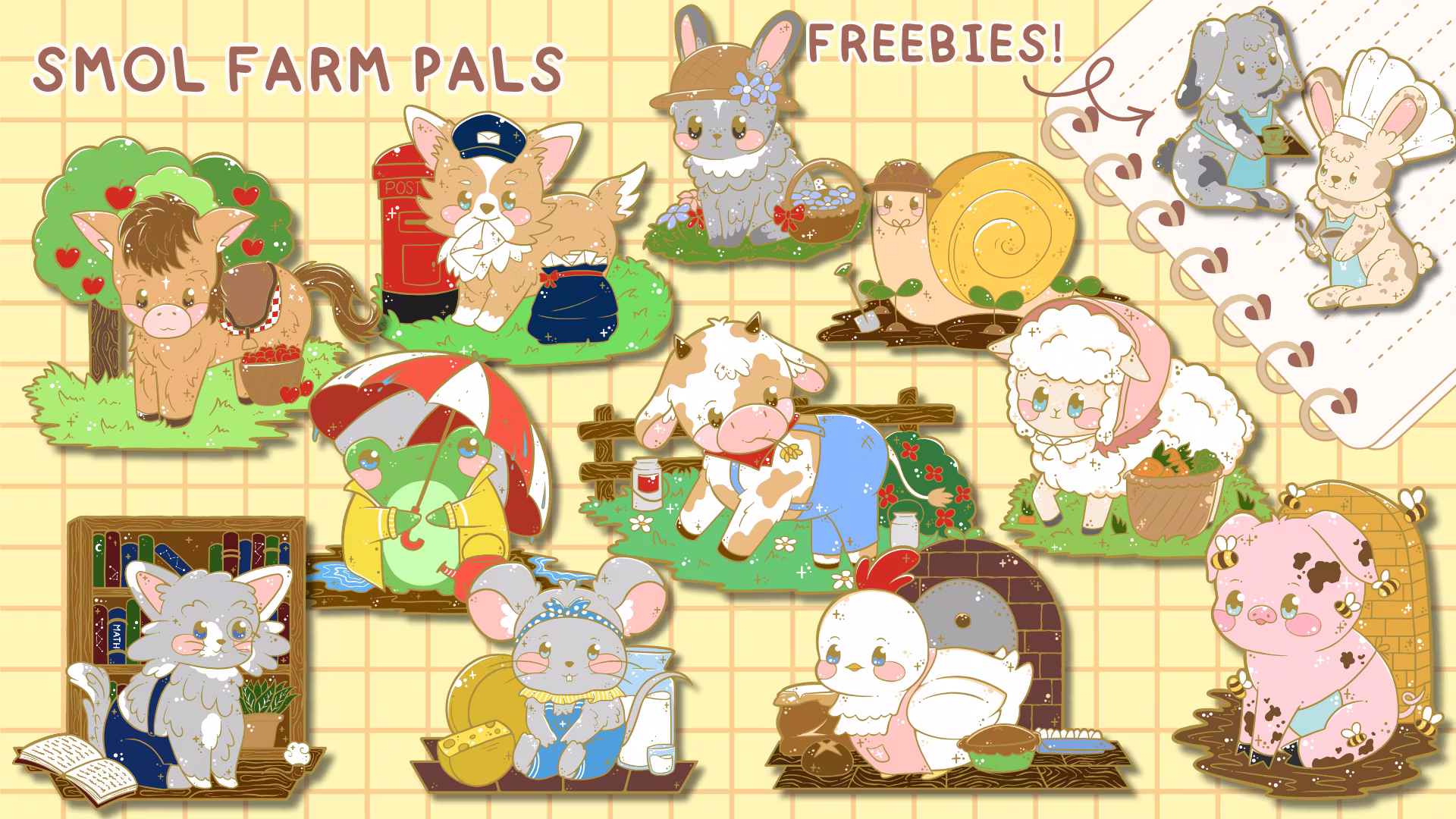 ✦Step into the cozy farm life and get to know all our workers there~ ⭐🌿This smol enamel pin project features 11 new enamel pin designs as well as a few mini pins to collect!!✦