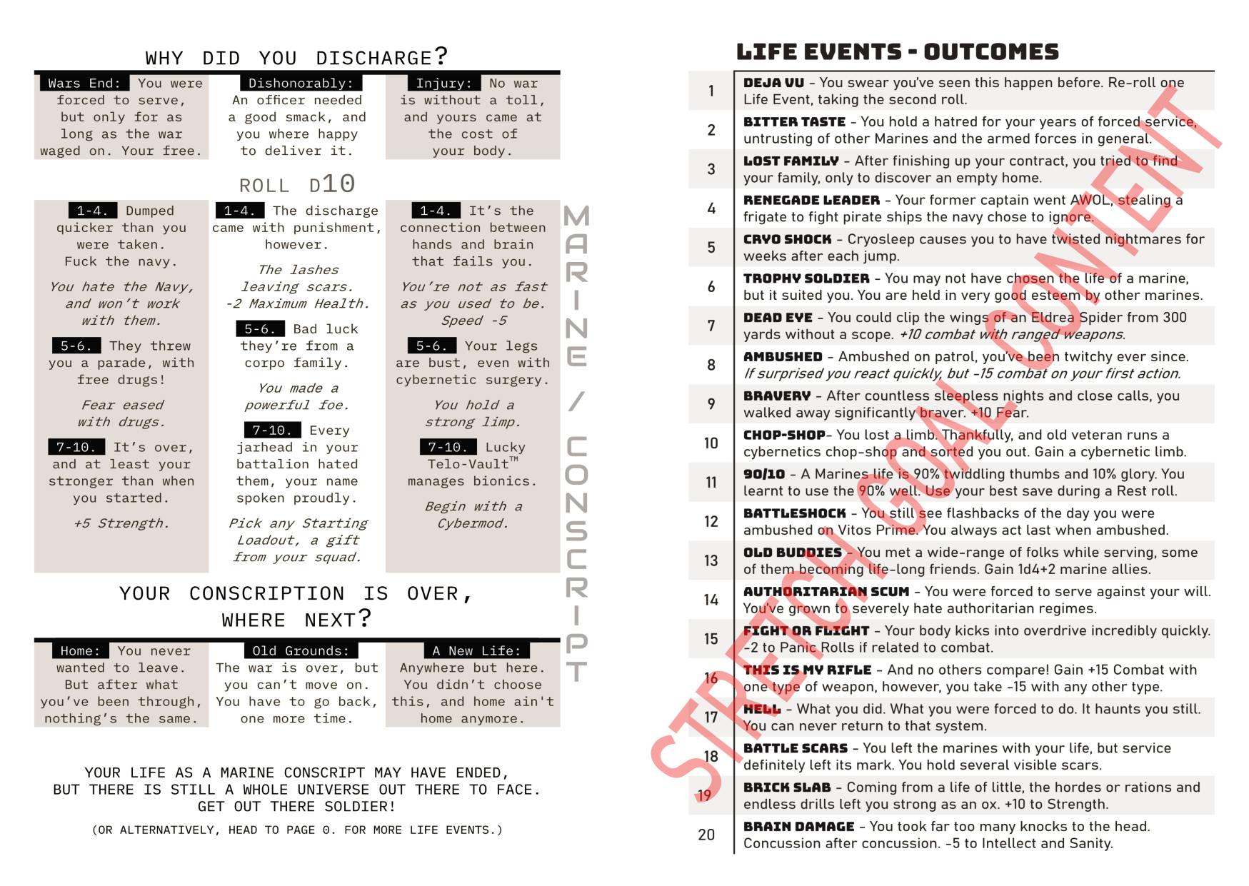 Inspired by life-story systems found across many classic TTRPGs, this Mothership supplement aims to provide a quick and enjoyable way to further deepen a character’s backstory; offering mechanical and narrative boons and banes through the random chance of dice.