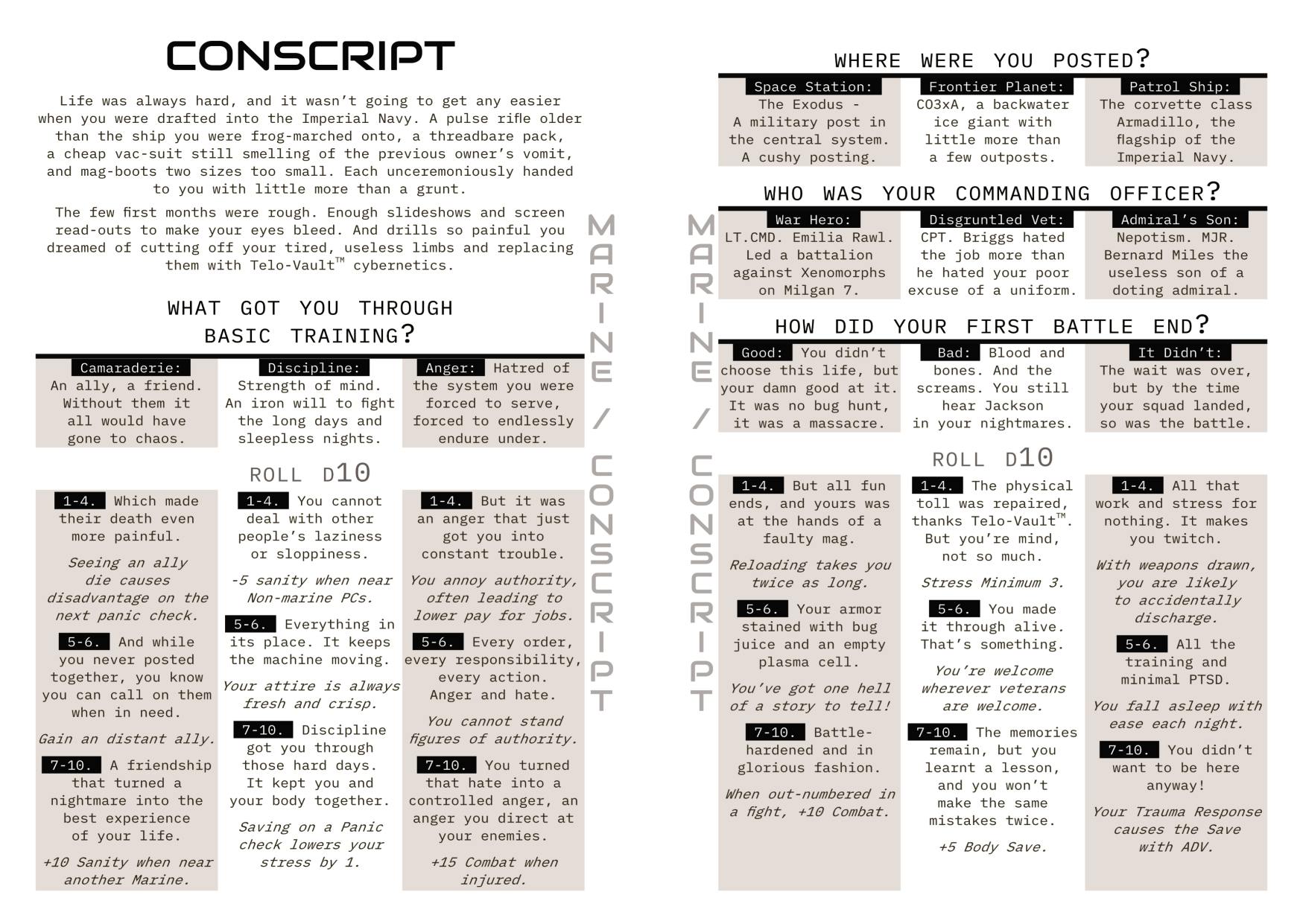 Check out the sample background below: MARINE - CONSCRIPT
