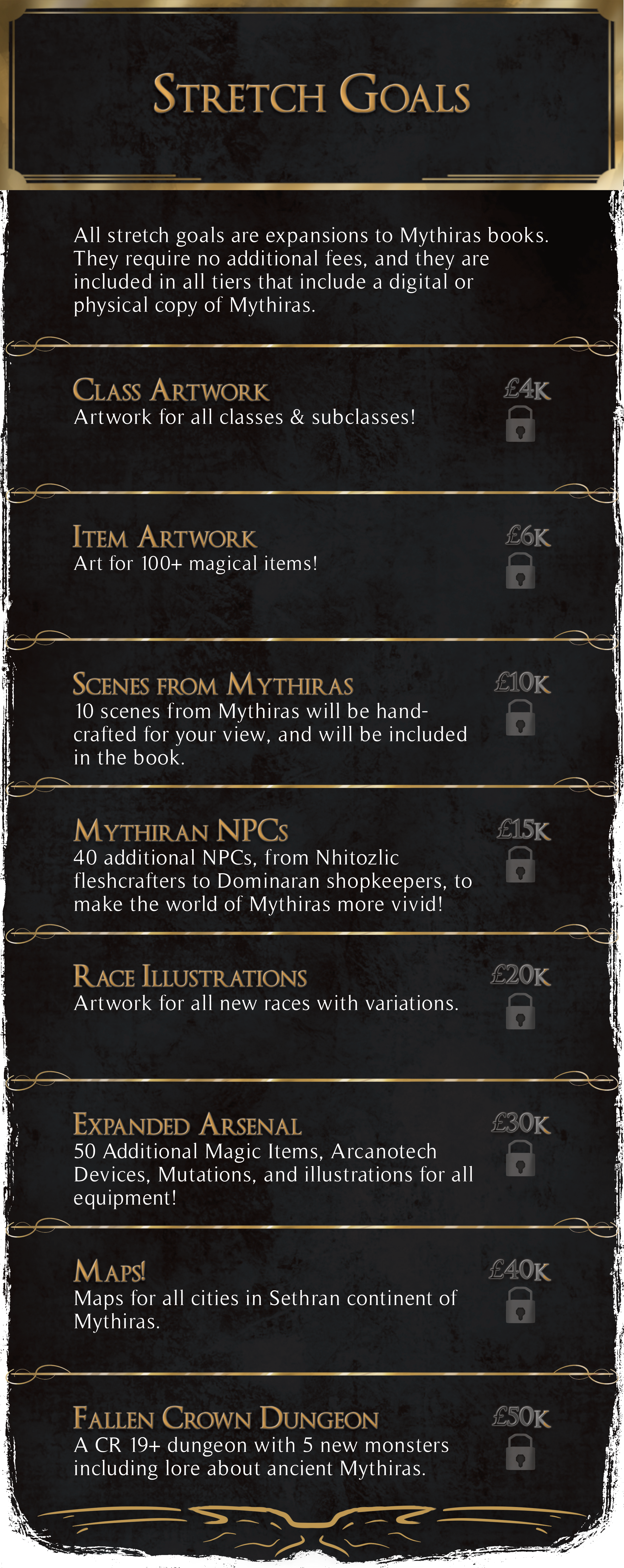 To bring this vision to life, we need your support! With your help, we can hire talented artists and additional help to ensure that every aspect of the book is polished and ready for your adventures. Our goal is to create a truly exceptional resource that we’re proud to share with the world, and that you’ll love to bring to your game table. Your contribution will help us create a rich, fully realized world where every corner holds secrets, and where heroes must choose between sacrifice and oblivion.