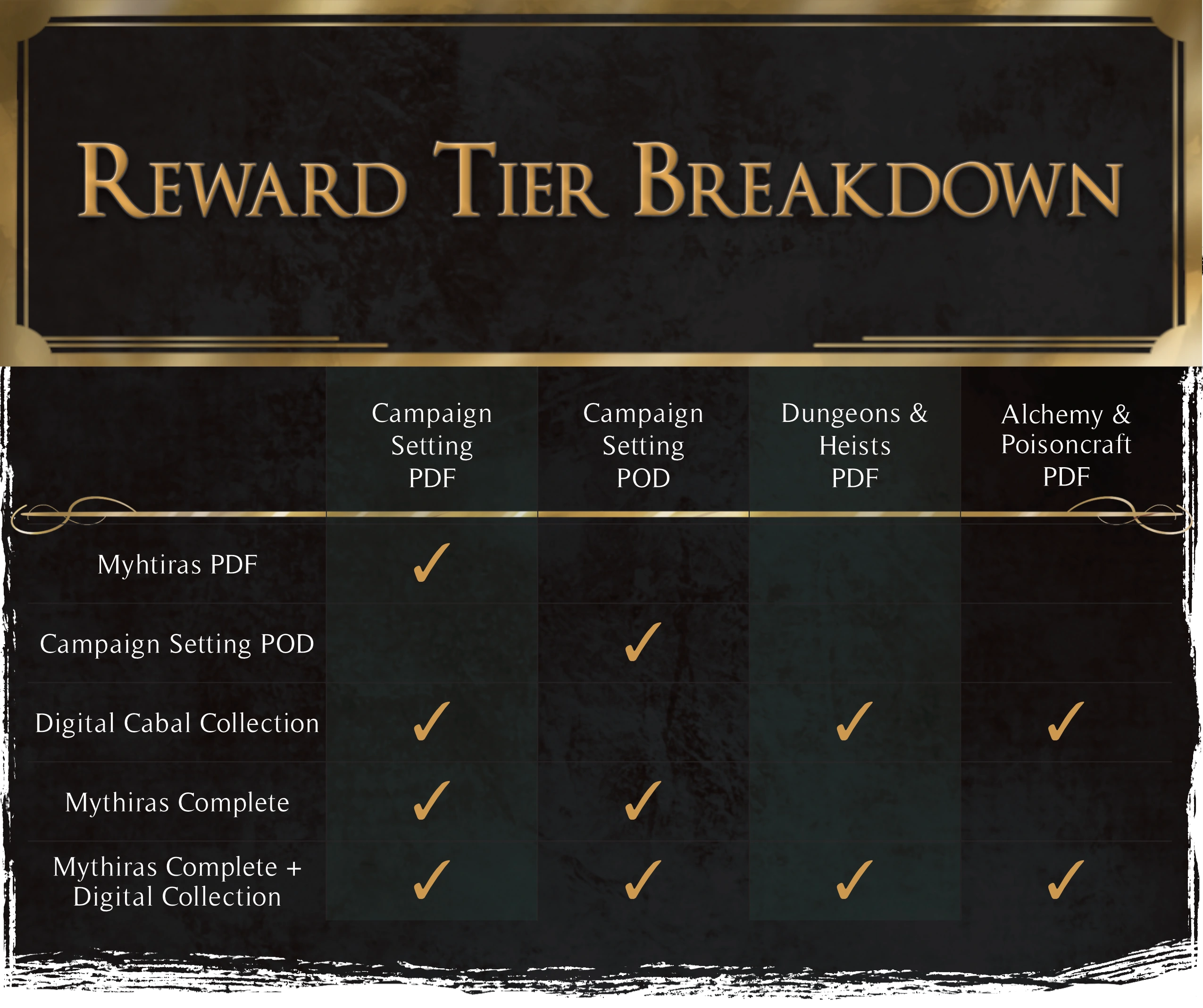 In this run, to minimize the risk and ensure complete and effortless delivery, we'll be using POD fulfillment through DriveThru RPG. The POD costs and shipping will be paid by the individual backer to minimize the number of transactions and payment cuts. Each backer will receive a POD code that can be redeemed through DriveThruRPG, where the backers will pay printing & shipping costs based on their location.