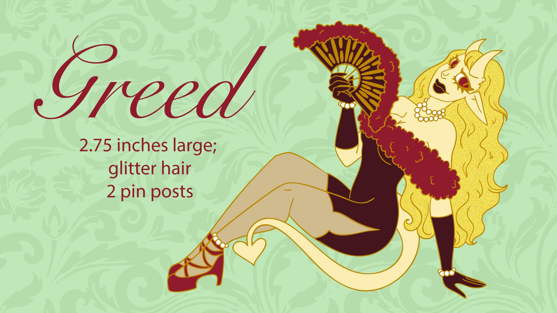Hello everyone! I finished the freebie and I love how the design turned out! Royarach and I did a fun character swap for our freebie design, I did a genderbent verison of their OC Azrael. Theyre freebie will be of gluttony! :3 Pin will be roughly 1.75 inches, purple dyed enamel with epoxy topper, glow in the dark eyes.