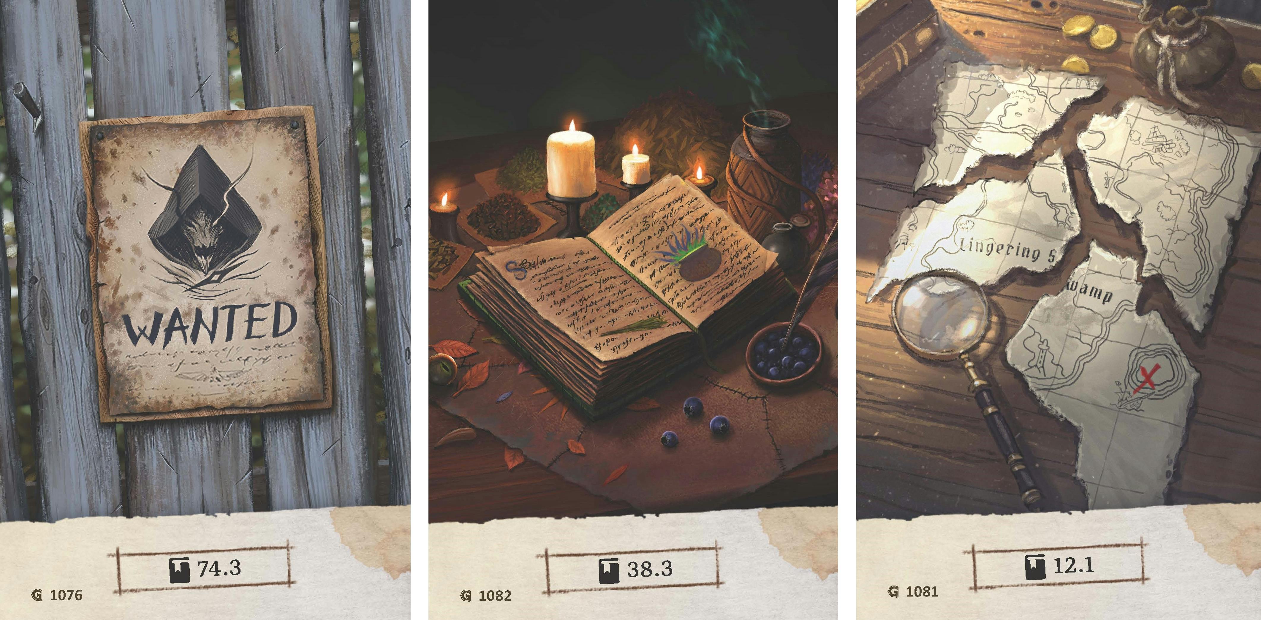 Whenever a mercenary wants to interact with the world in a way that carries risk, the player uses their Modifier Deck to determine the outcome. The Modifier Deck starts with 20 cards, which are shuffled together to create a random draw pile. The player draws the top card and adds the number printed on the card to their action’s ability to determine the end result.