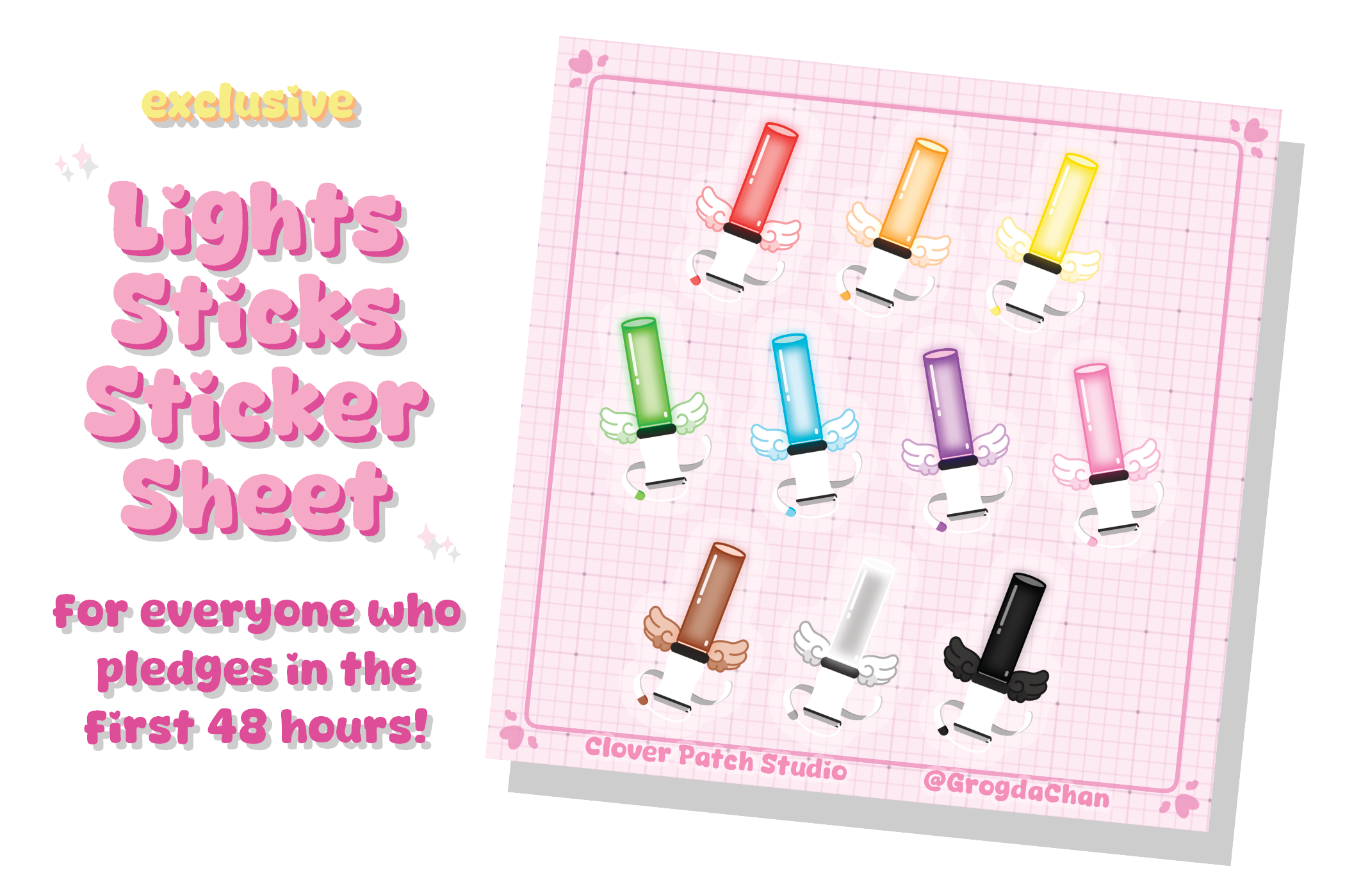 Who created this project? Hi hi~! I'm Grogda! A giant cyclops V-tuber! I've been V-tubing for about 3 years and doing Artist Alleys under my brand Clover Patch Studio for about 6 years! You can learn more about me under the "✨ About The Artist" section of this page. I'd love to see you over on my channel some time so please don't be nervous to stop by and say a hi hi~! https://www.twitch.tv/grogdachan
