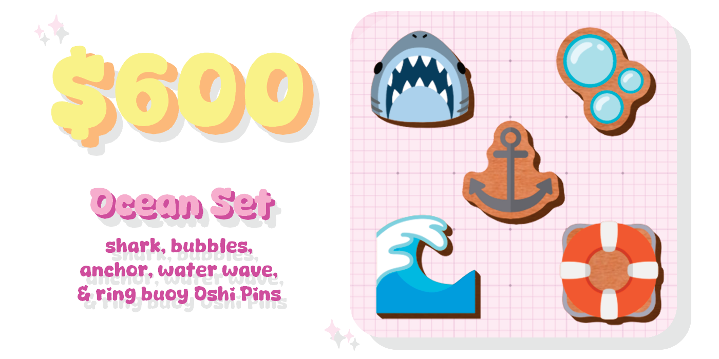 The initial amount to fund this project is $300, that'll unlock the first of many Oshi Pin sets: The Fantasy Set ✨. After that the project will be A GO! But in order to unlock more and more pins we must hit our Stretch Goals. Stretch Goals for this project are at every additional $300 funded. You can scroll below to see all the different unlocks and how much crowdfunding we must achieve to get them. In the case all stretch goals are met - NEW goals with even MORE pins will be added to this project!