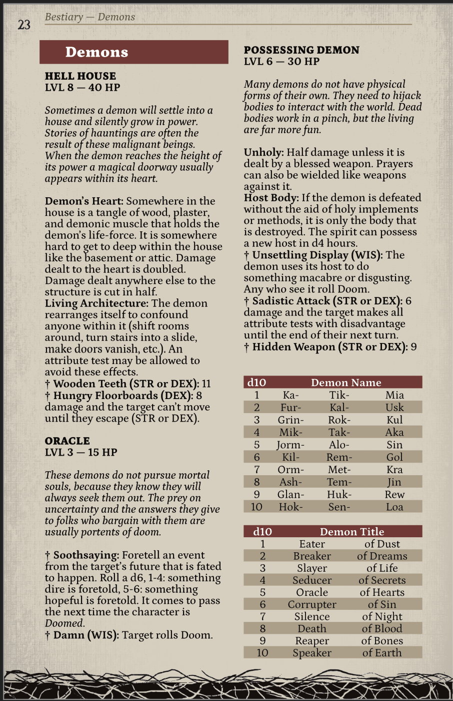 I just wanted to check in and let you all know what's been going on with the Black Tower Hack. First off I decided to completely rewrite the Atlas of the Languishing Lands. It's still building off of the bones of what was in the preview doc, but it is expanding out to be the best GM companion that it can be. The even better news is that the project is still on target to deliver in printed form by June. The bestiary has been expanded out to 45 entries, with all monsters from the Black Sword Hack SRD being replaced with original enemies born of the Languishing Lands. Here's a preview of some soul hungry demons for you while you wait. I'm going to try and make a habit of dropping material here from every couple of weeks.