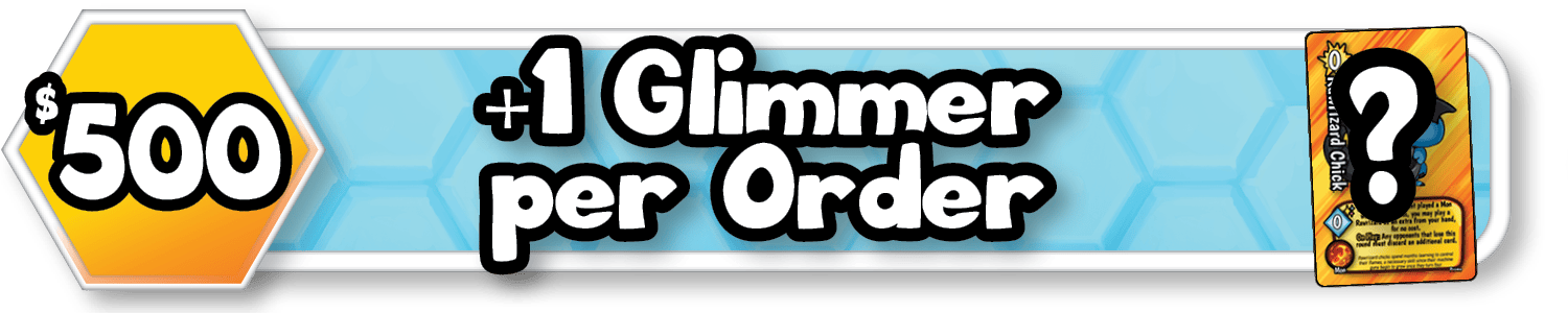 Glimmers added to orders will be random. Glimmers are the rarest form of a card, with different colors than the standard and holo versions of a card. Each are equally rare and are found in 1 out of 4 booster packs.