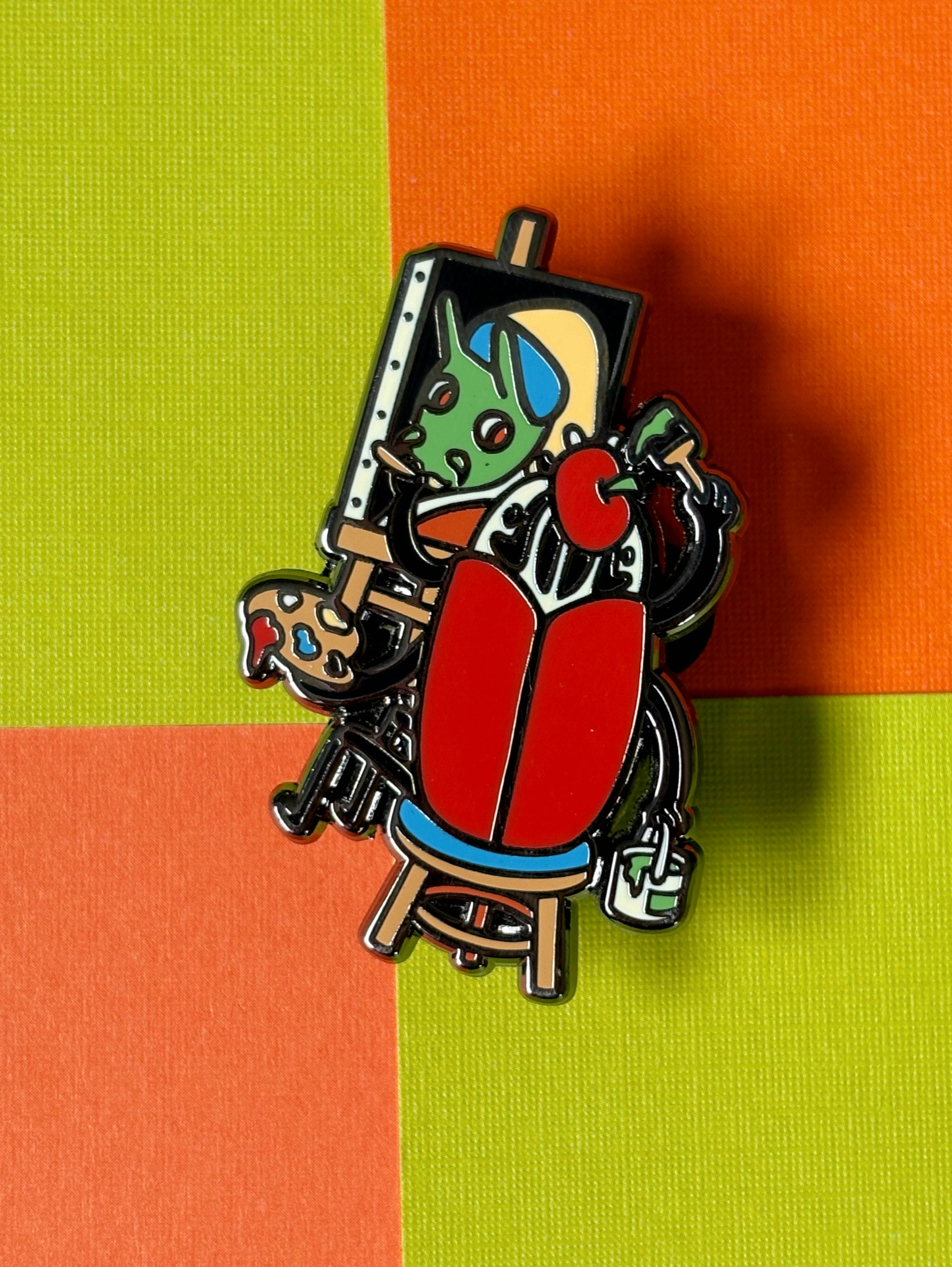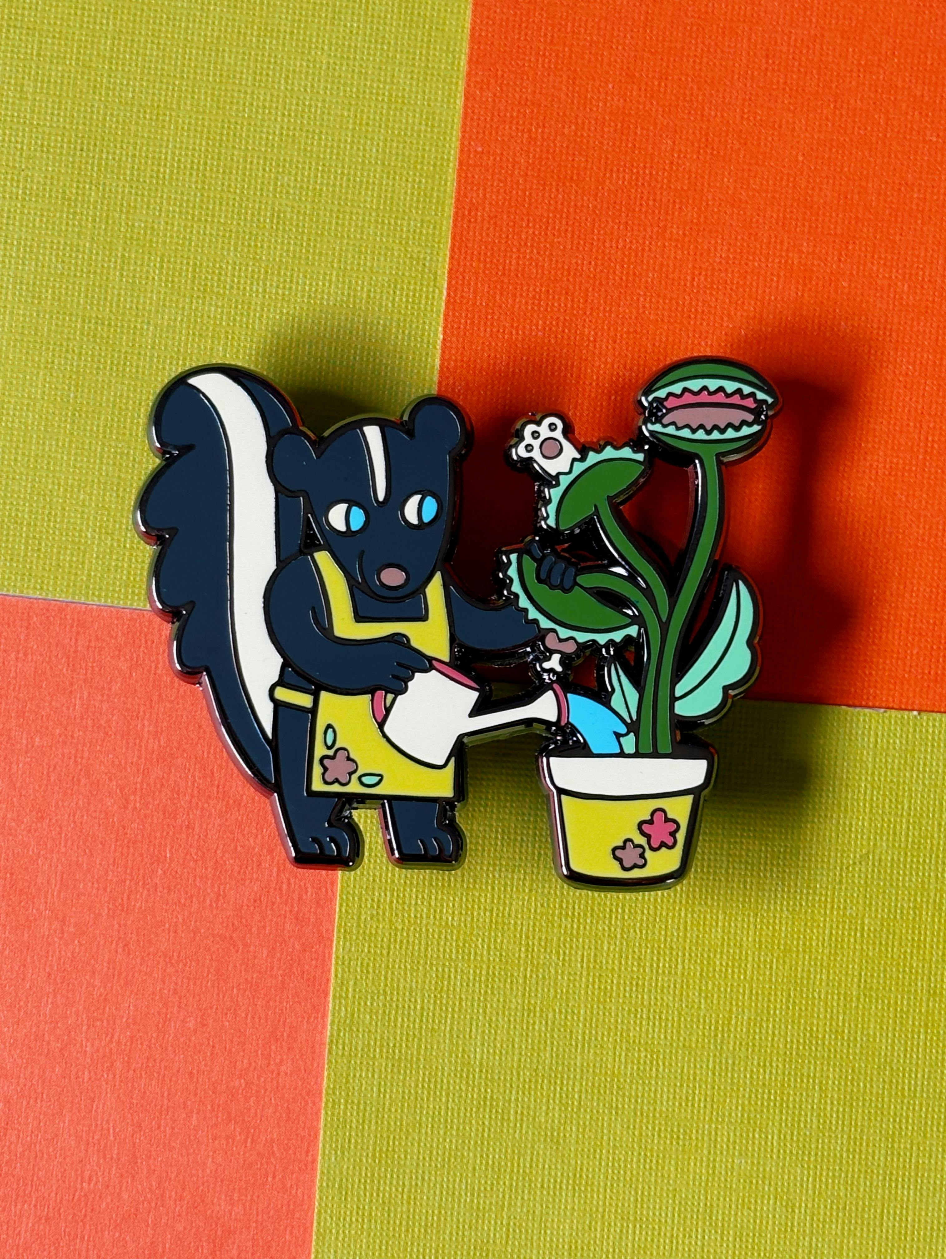Cozy Creepies Bundle - A set of three Cozy Creepy Pins (skunk, opossum, and beetle) as well as a Dingbat vinyl sticker.