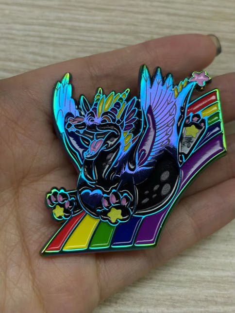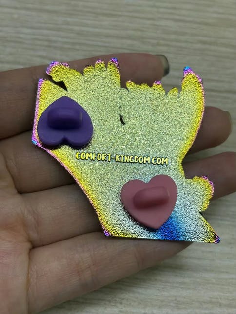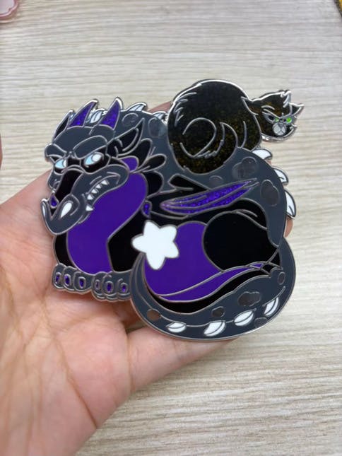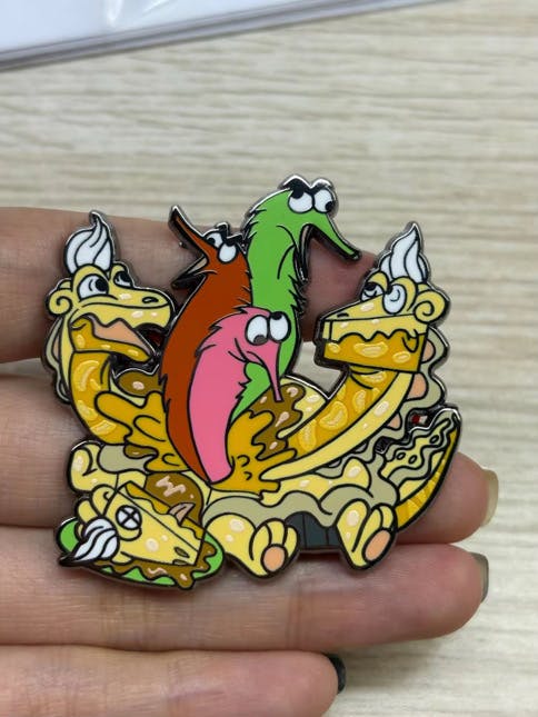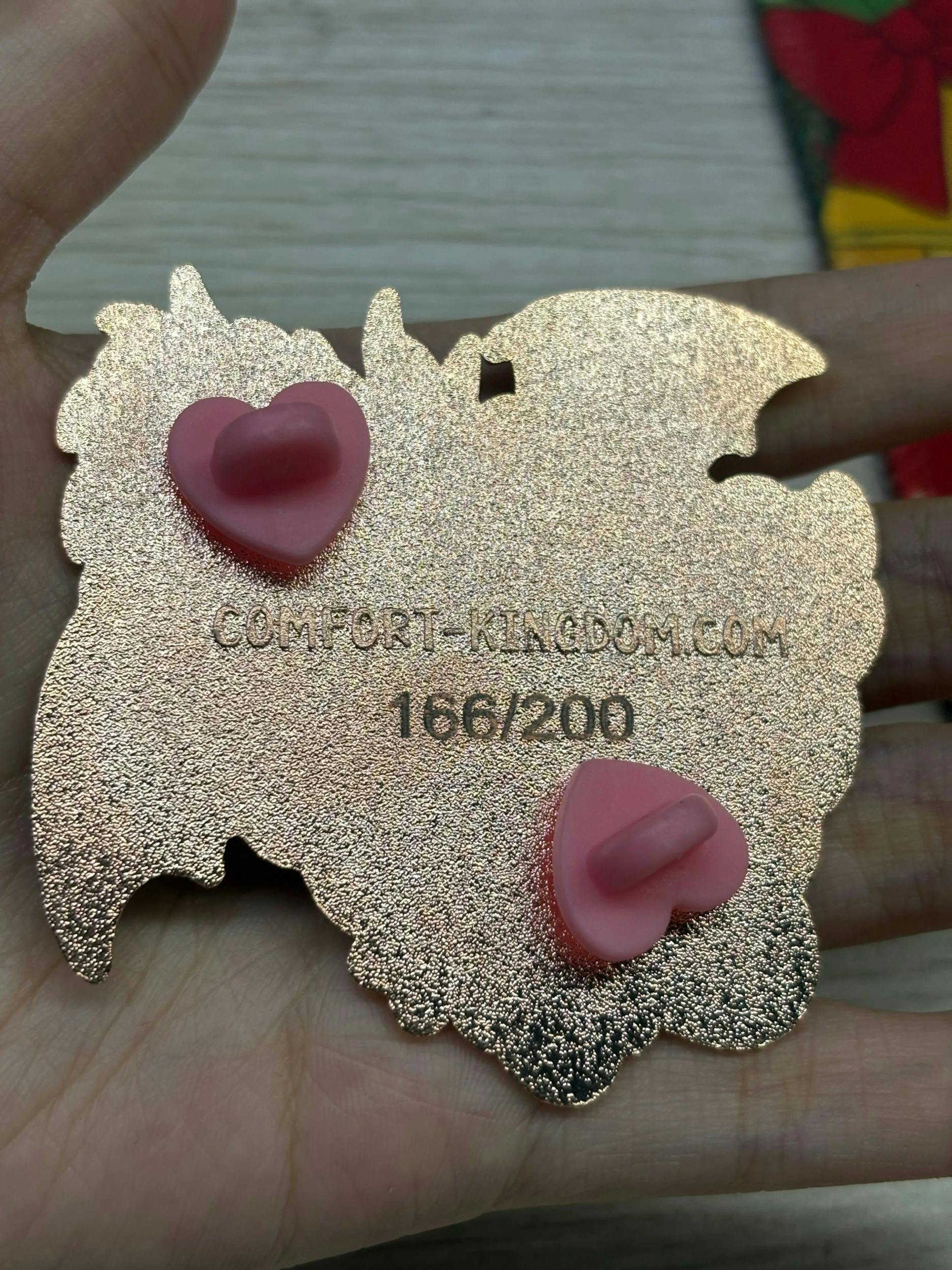 We are just waiting for the Screen print on this one but the glitter is looking great! This is the limited edition Giant pin and each are numbered on the back !