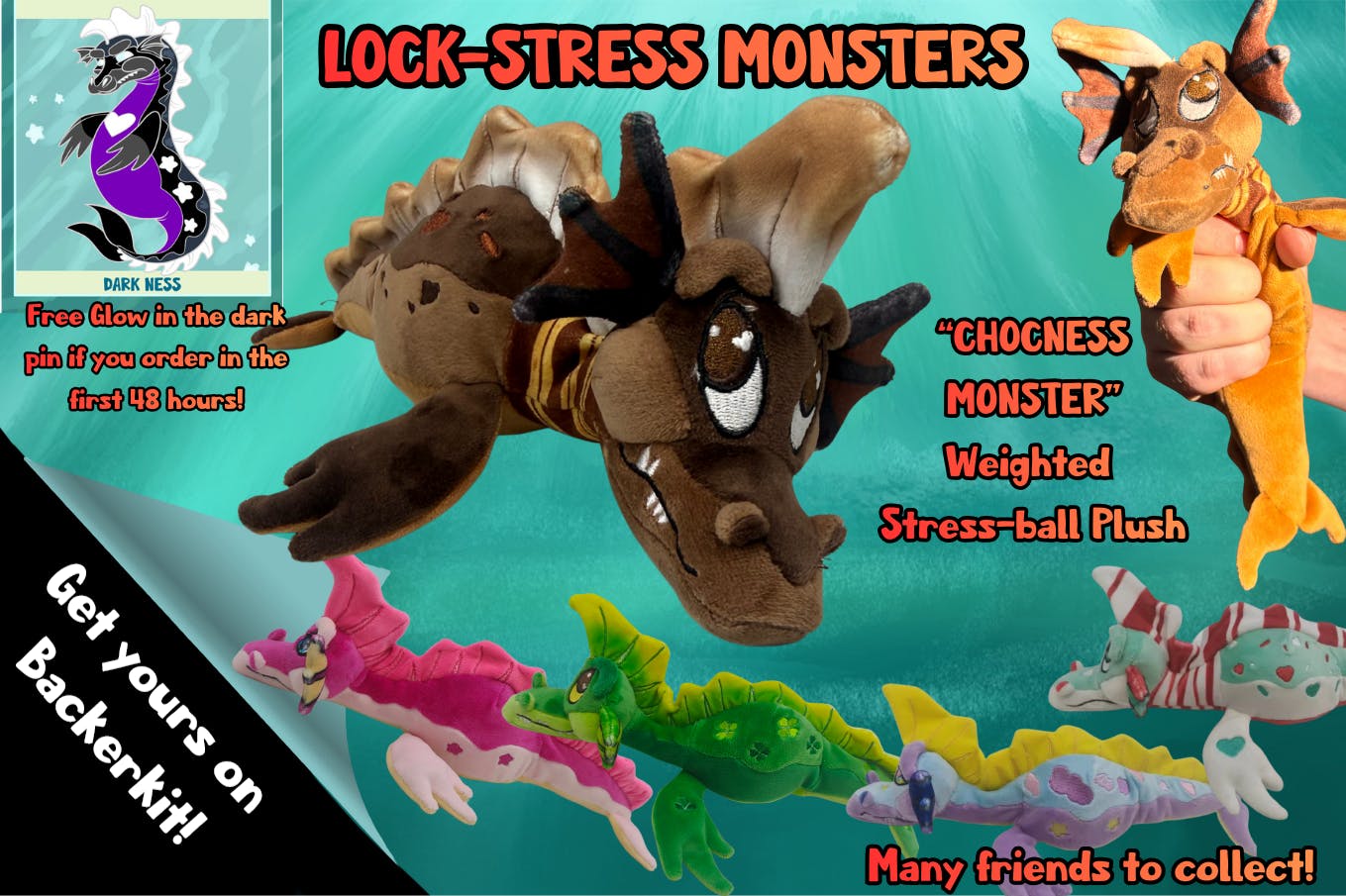 We are doing great with our weighted dragons, and last year we created our first stress-ball plush our “Unicones” to great success, but we wanted to create something more affordable for the masses that had the feel of the unicones but the characterization of our dream keep dragons, and thus the “Lock-Stress Monsters” was born! You will see a little bit of crossover from our most popular dragon characters and many new fun characters each with their own personality!