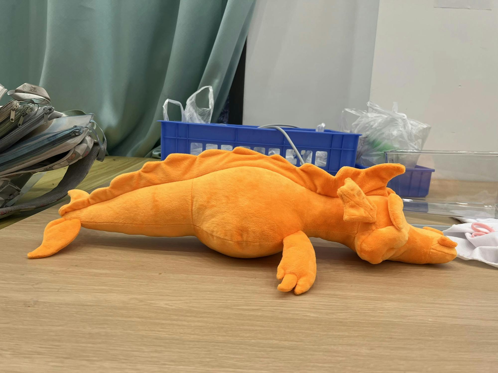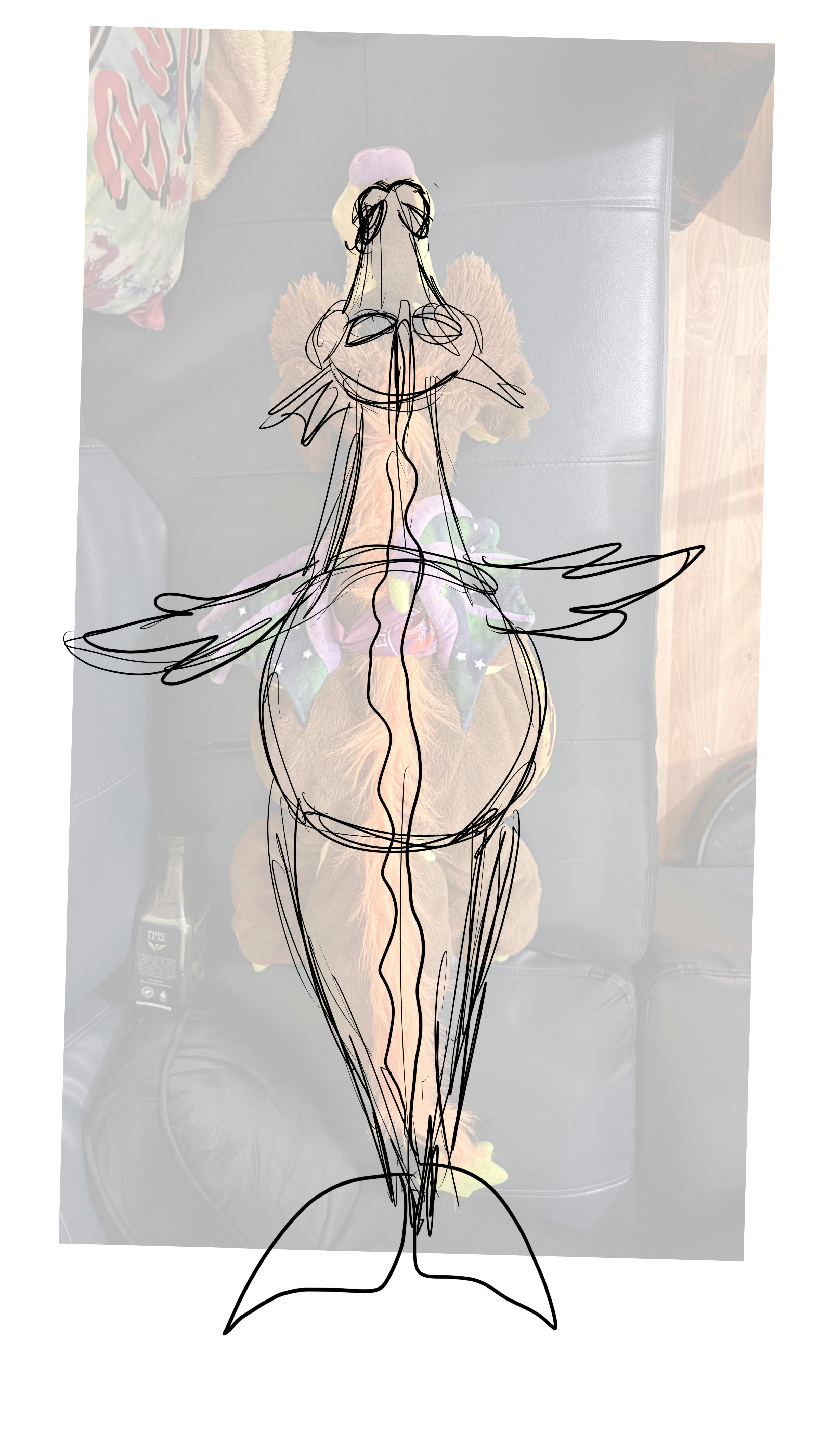 We’ve gotten new sample shape updates for the weighted nessie. She needs a longer neck and thicker and longer tail and to be much much more floppy. I don’t want her HUGE so we are trying to get the proportions right and then plan to shrink her. We are aiming for around 22 to 24 inches long. But if it comes down to making her look right she may wind up companion sized. I dont know. The front of nose looks right now, but the muzzle is a bit too thick and not long enough either. I have to do more draw overs.