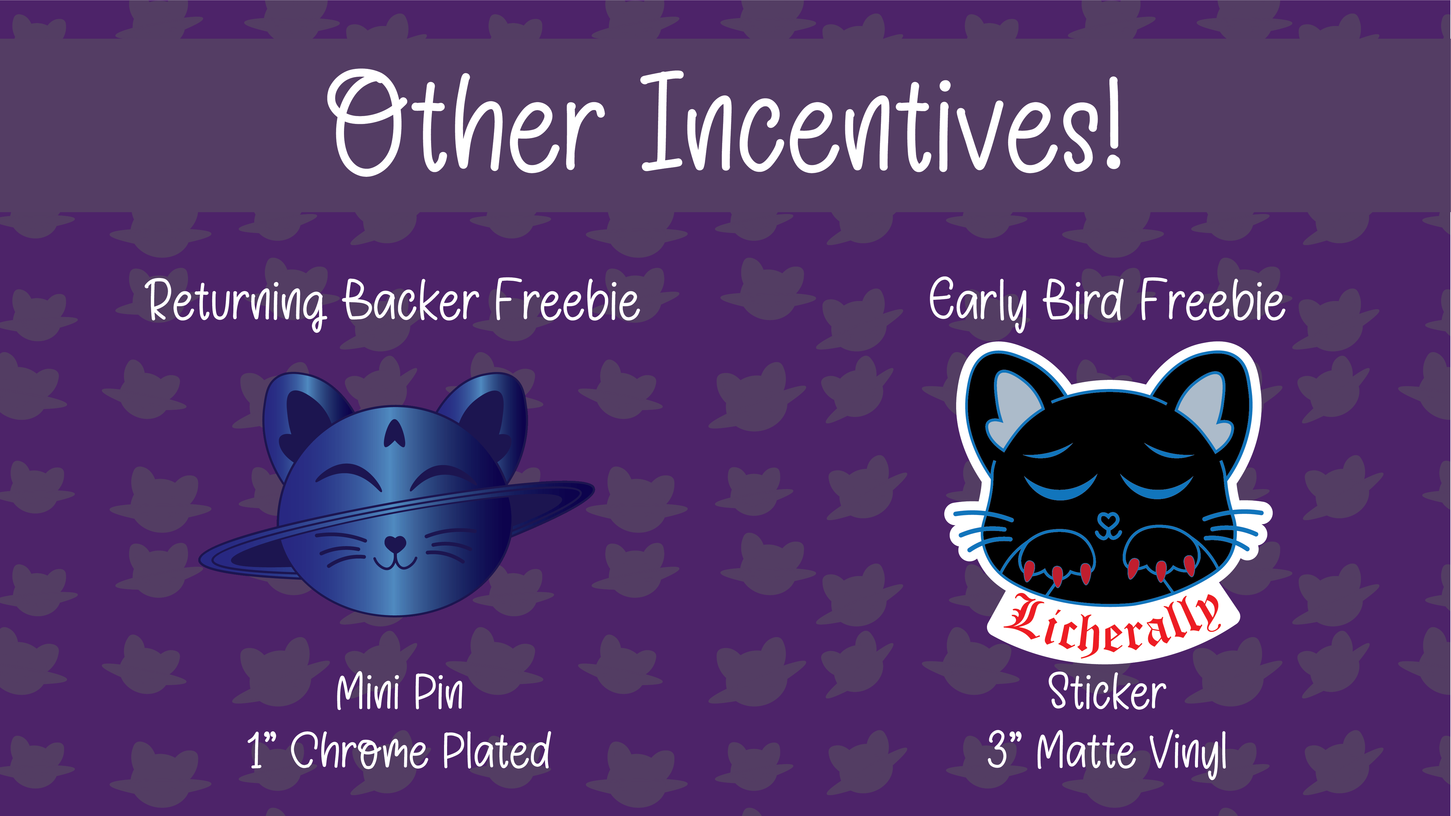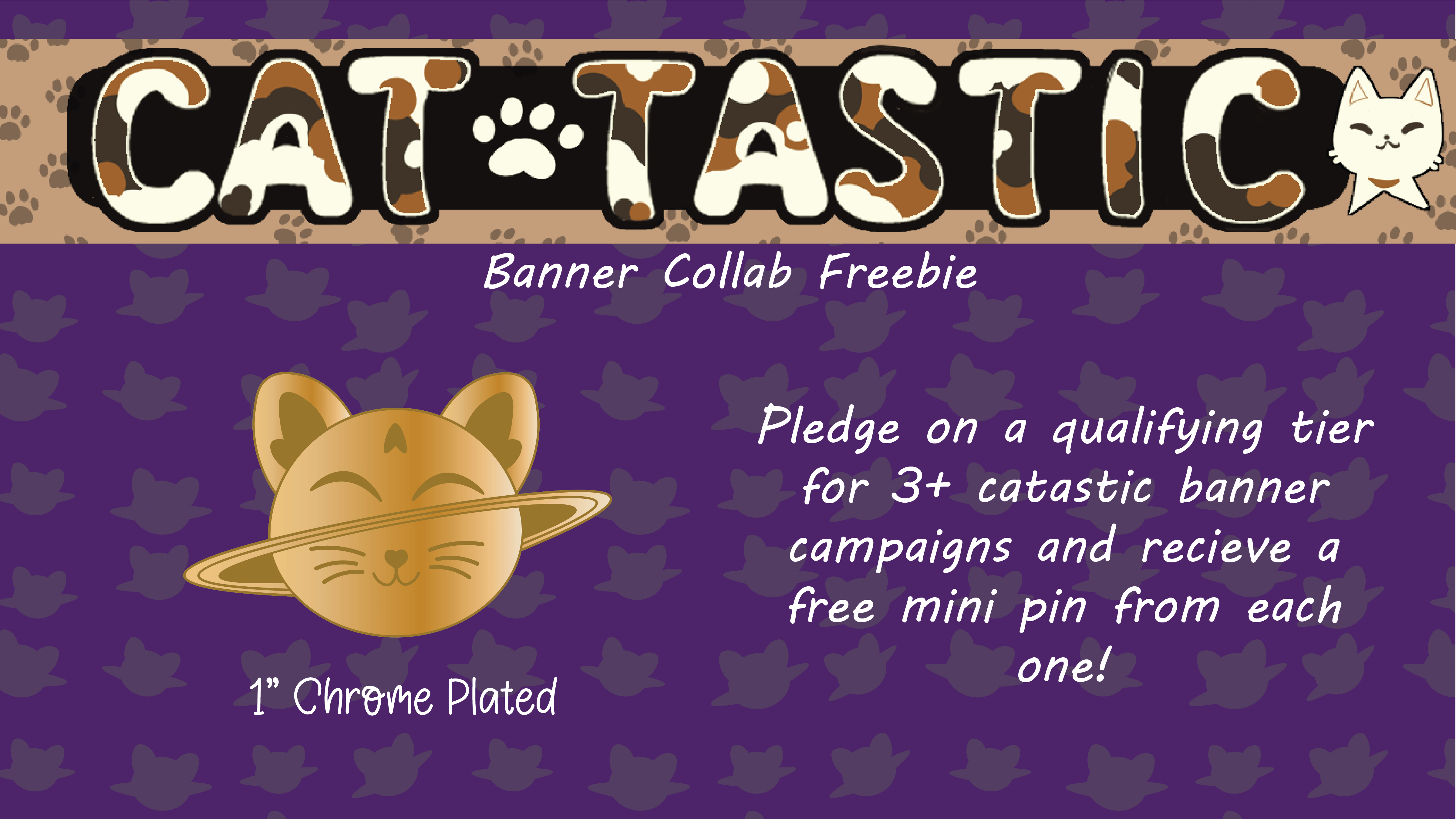 In addition if you back 3 or more Cat Banner campaigns you will receive ANOTHER free pin from all qualifying campaigns! Click this banner, or the banner at the top and the bottom of the page to see the others!