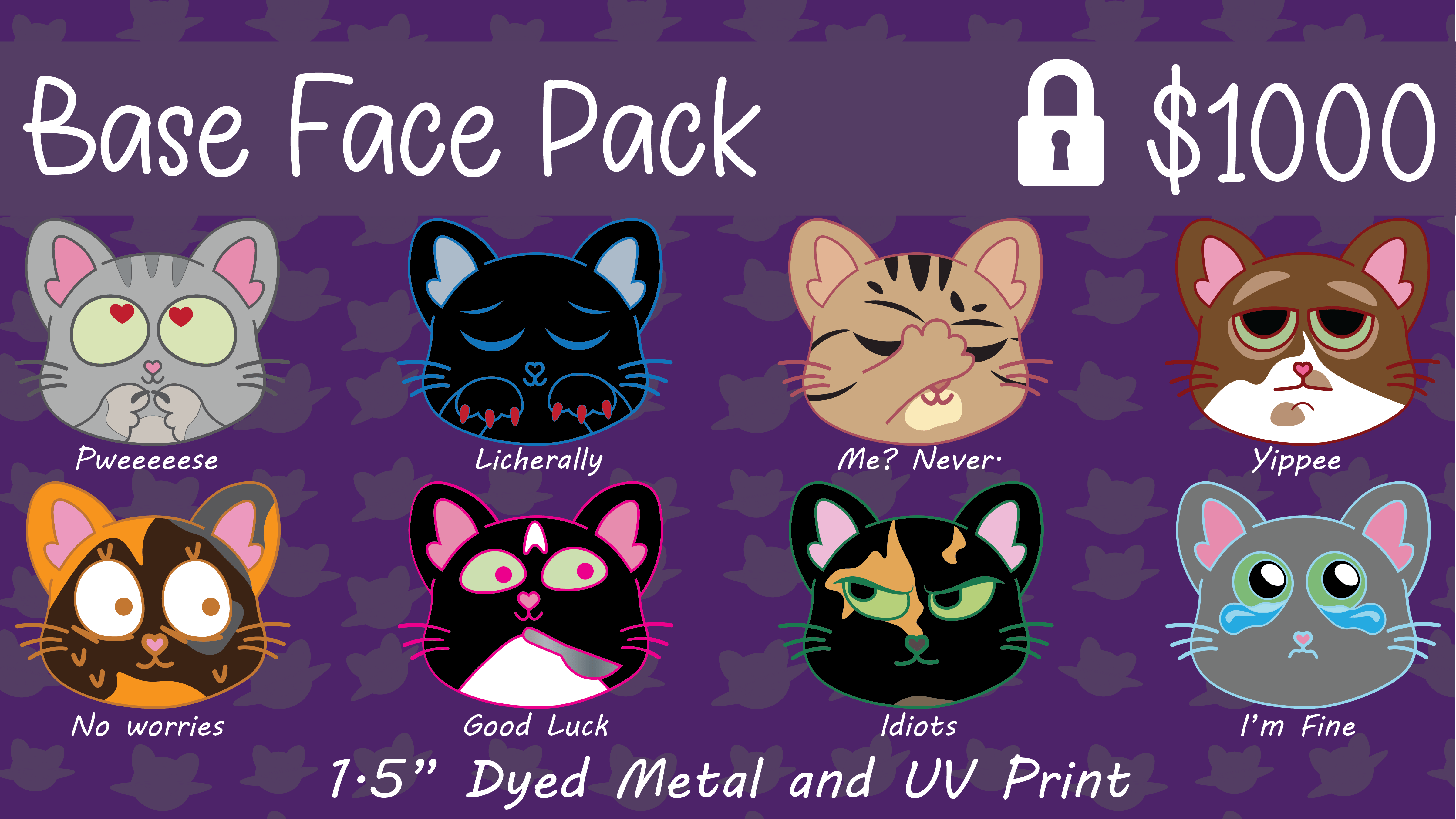 New this campaign is the option to customize a cat face to match your cat! Post campaign, once your pledge has charged, I will reach out directly to change any of the campaign faces to match your cat!