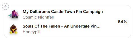 Speaking of which, thank you for those that have backed both campaigns! Thanks to you guys we are first in the cross collab projects in the Game Over Banner, and we are top 10 in the entirety of Pintopia. We are so honored to have so many people who support the both of us. If you haven't yet, please check out my partner's campaign.