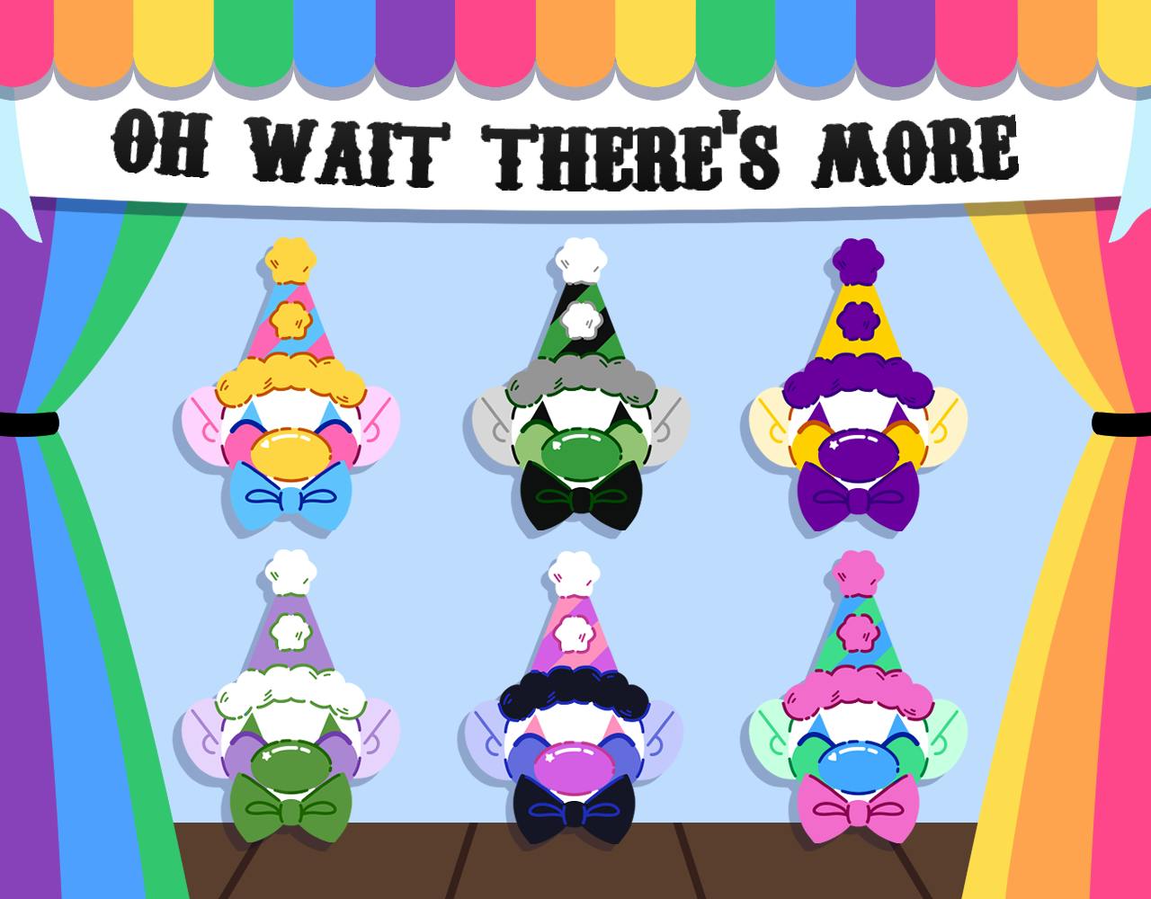 Clowns are colorful just like the queer community, and here the flags have been represented in color on ~1.5" dyed enamel pins. This campaign features 2 different molds, a clown and a jester, and 12 color ways. And if we reach the stretch goal, 3 more colorways will be added.