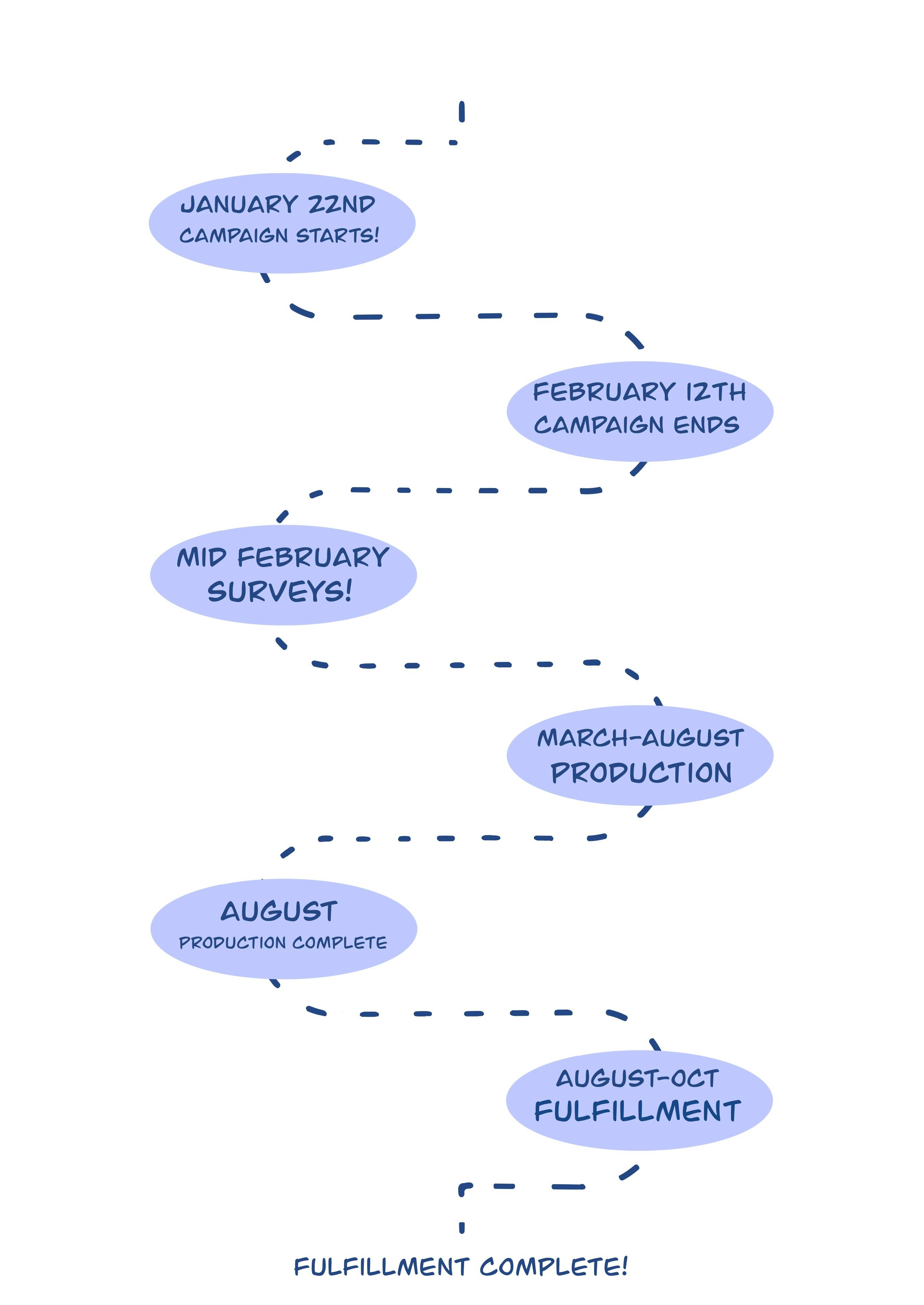 Holidays: Due to holidays in China around this timeline, there may be periods of time where production is halted. I have added in a little extra buffer to account for these timeframes, however, it is only an estimate.