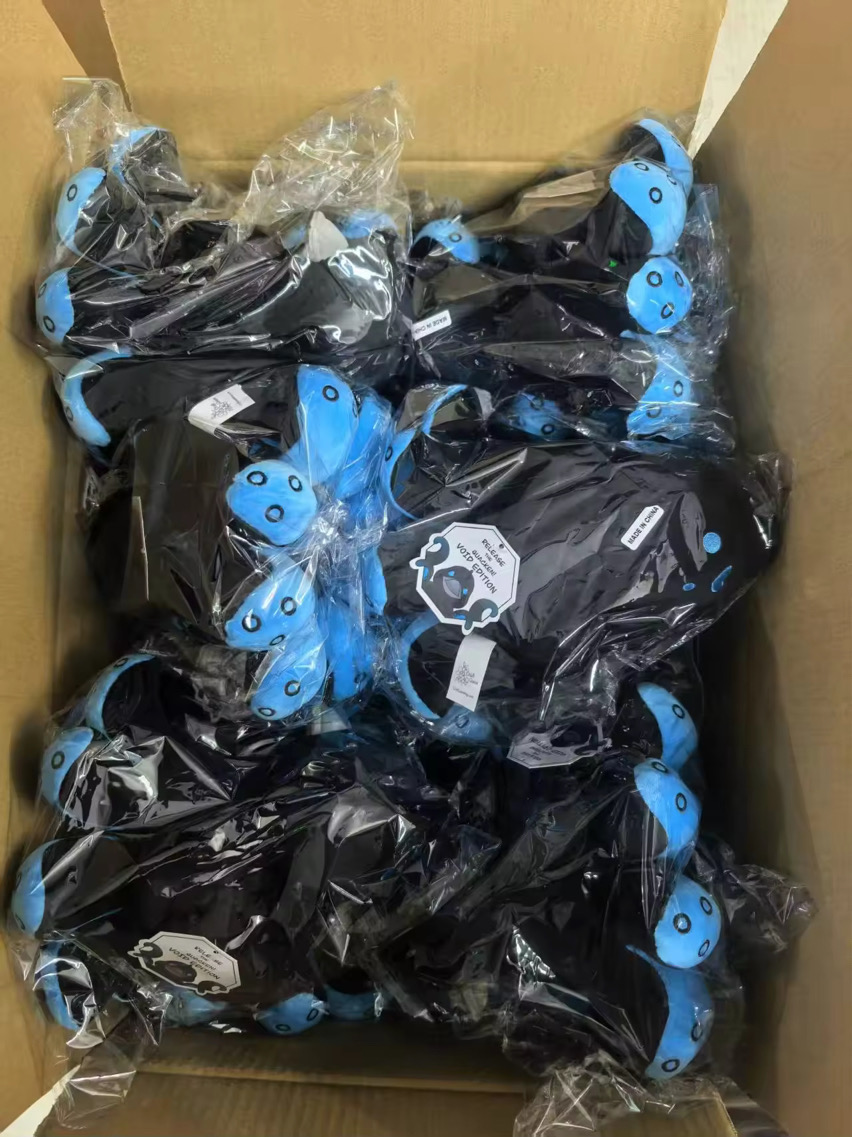 The void plush is currently getting sampled in order to get the colors right. I would have liked to get this done earlier, but the factories were on a month long break until earlier this week. I will be updating as these progress through the production line.