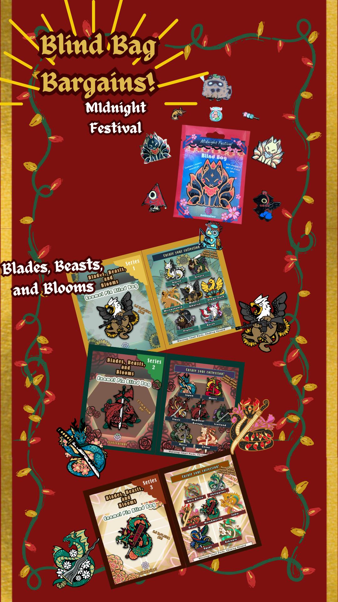 A treasure chest of goodies and gems, from enamel pin mystery bags, washi tape, journals, and more- ready to ship when the event is over!