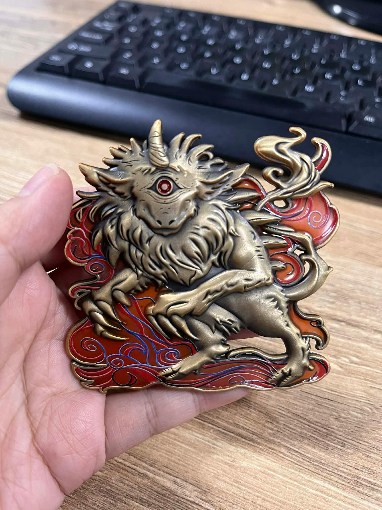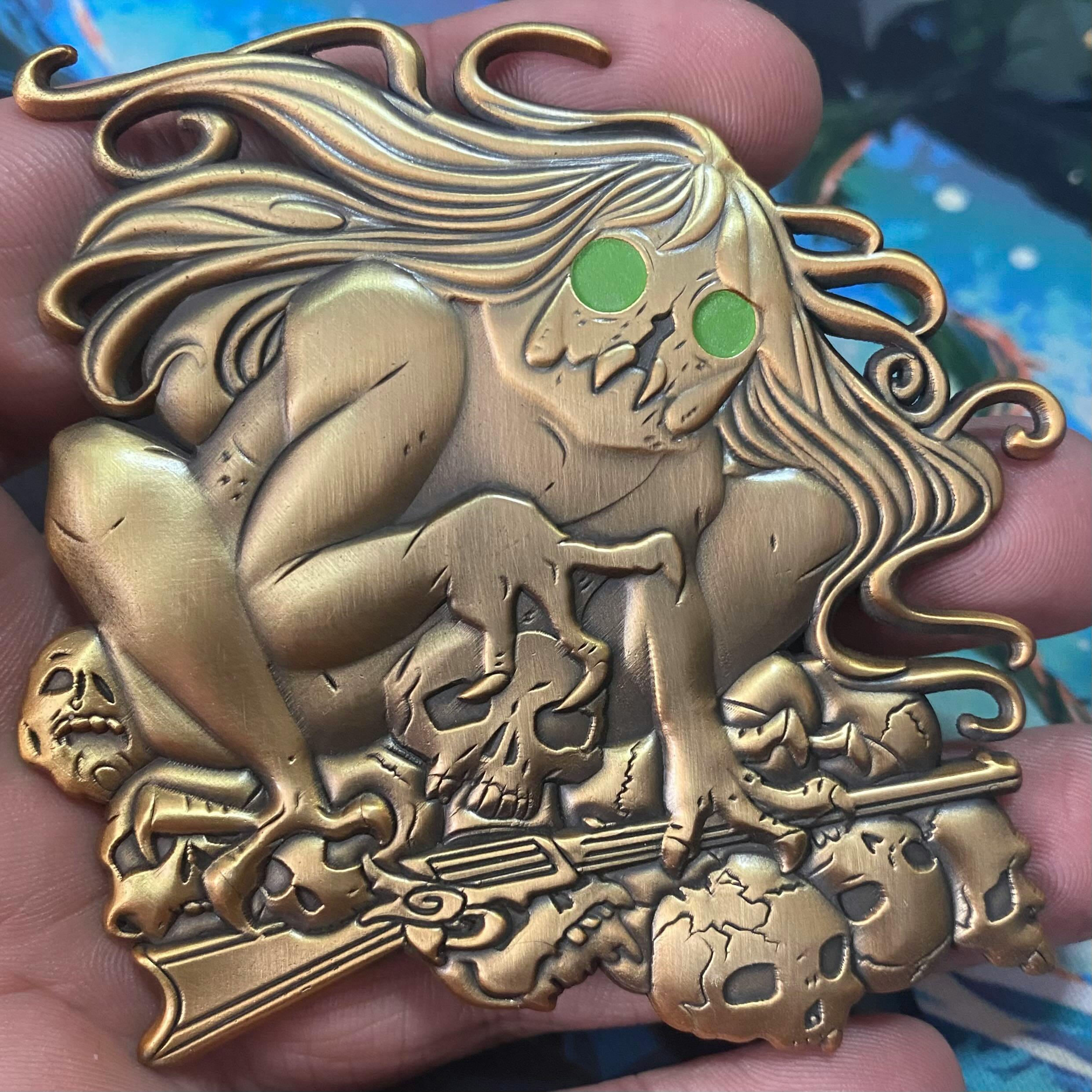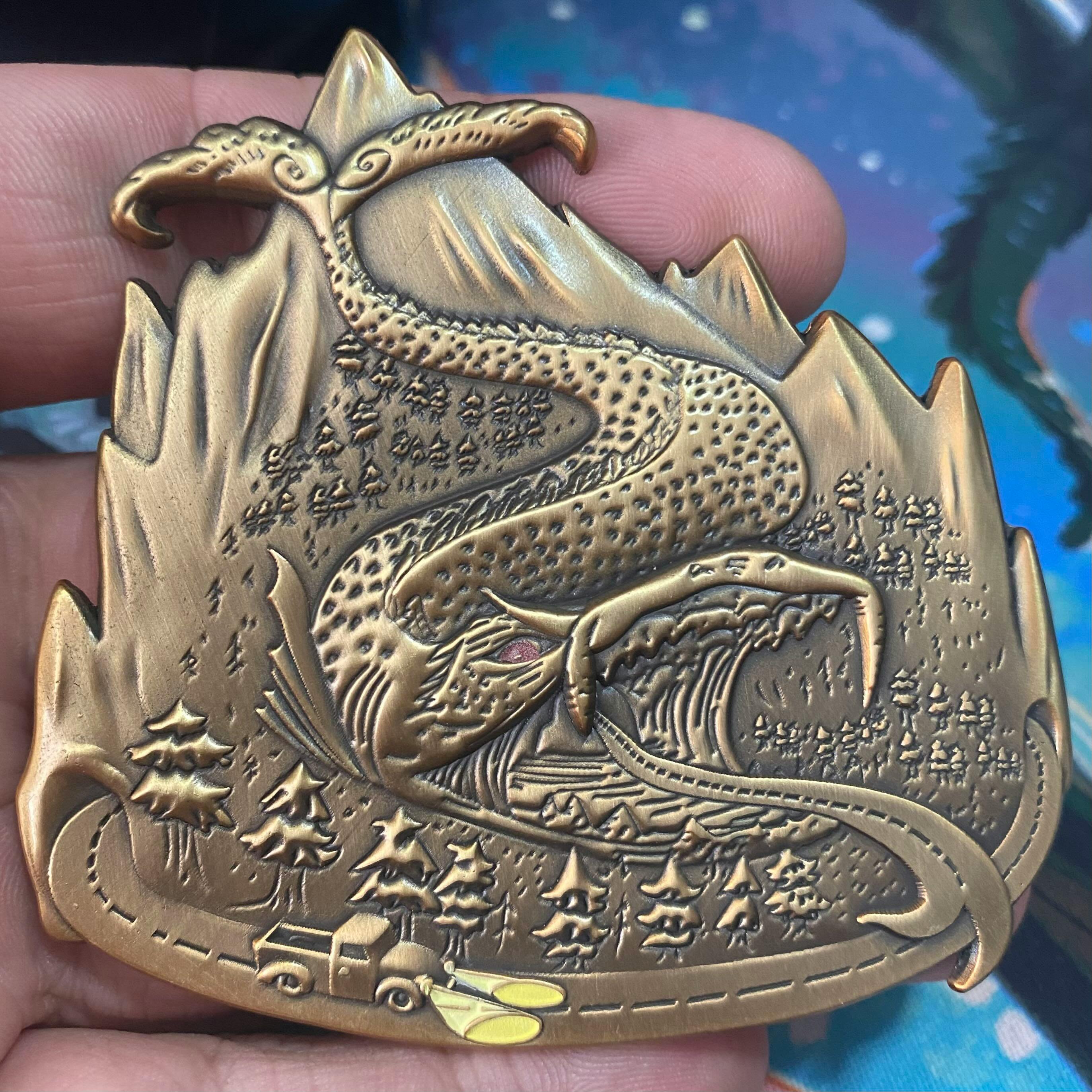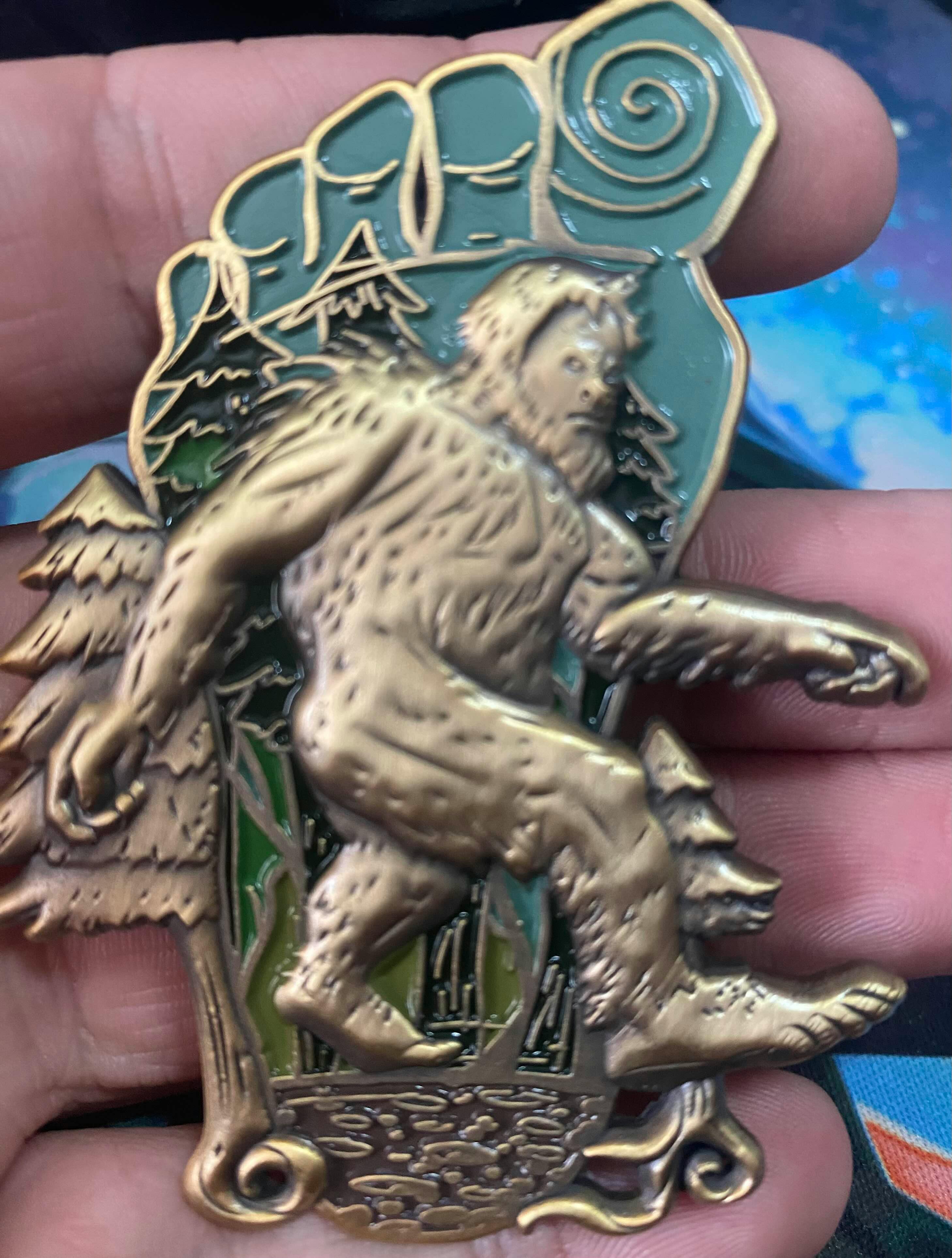 We've been working with our wonderful manufacturer who has sent us some examples of our 3D pins for us to examine in-person! What I can say is while they are heavier than the average pin of this size they are not as heavy as I thought they may be. Bigfoot (the lightest of the batch) weighs in at 1.41oz while the Slide Rock Bolter show him up with 2.01oz... for reference these are 3" pins and our previous 2.5" pins (which have about 70% of the area comparatively) clock in at just around 1oz on average... making them <40% ish heavier? - Anyways that's enough math for now here's some images!