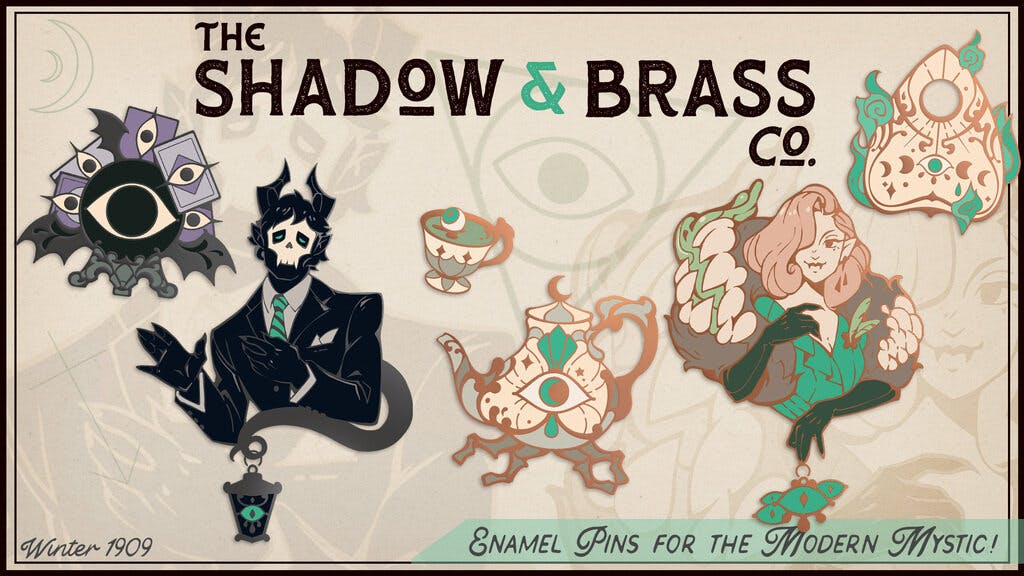 Kira Night's Shadow & Brass is a chilling pin campaign that brings both mystery and intrigue to the table in a variety of mesmerizing trinkets!