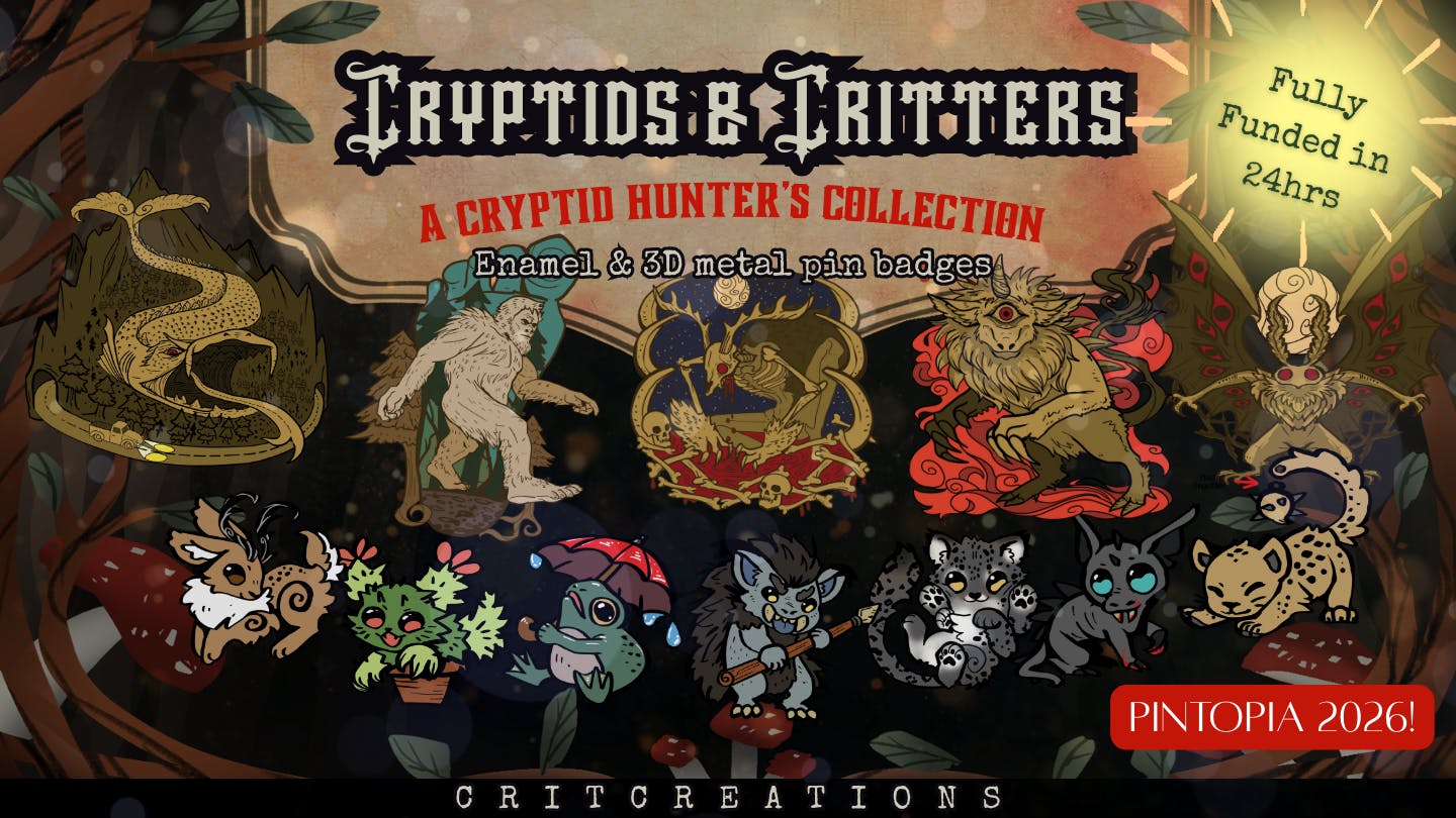 Thank you all for your amazing support throughout the Cryptids and Critters campaign, it was a pleasure to create for you for the duration of this Pintopia! We hope that you've thoroughly enjoyed the process alongside the stories and the polls along the way. Now it is officially the end of the Cryptids and Critters funding period.