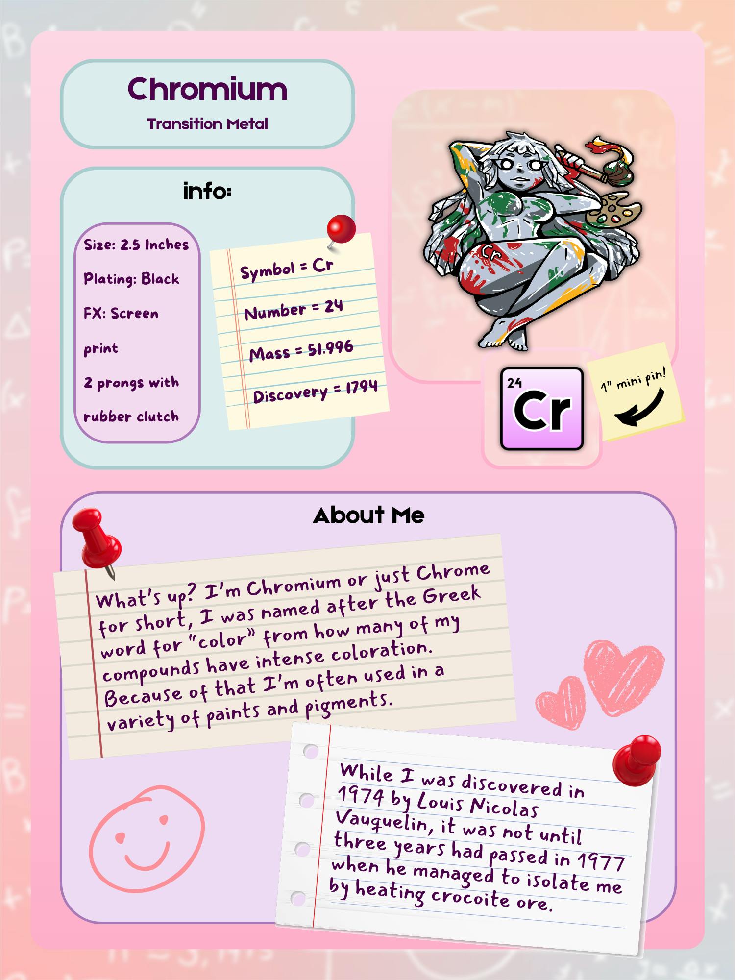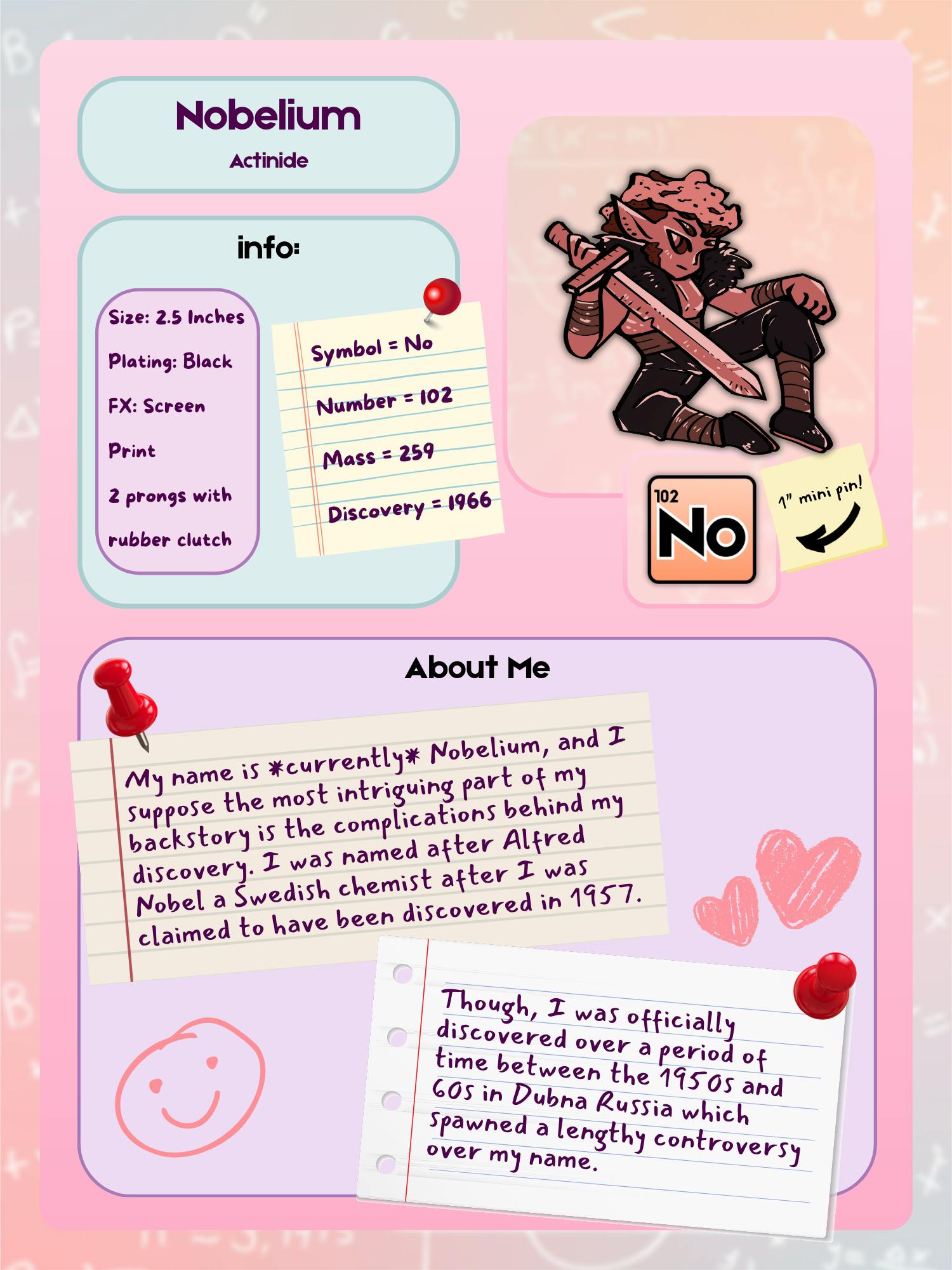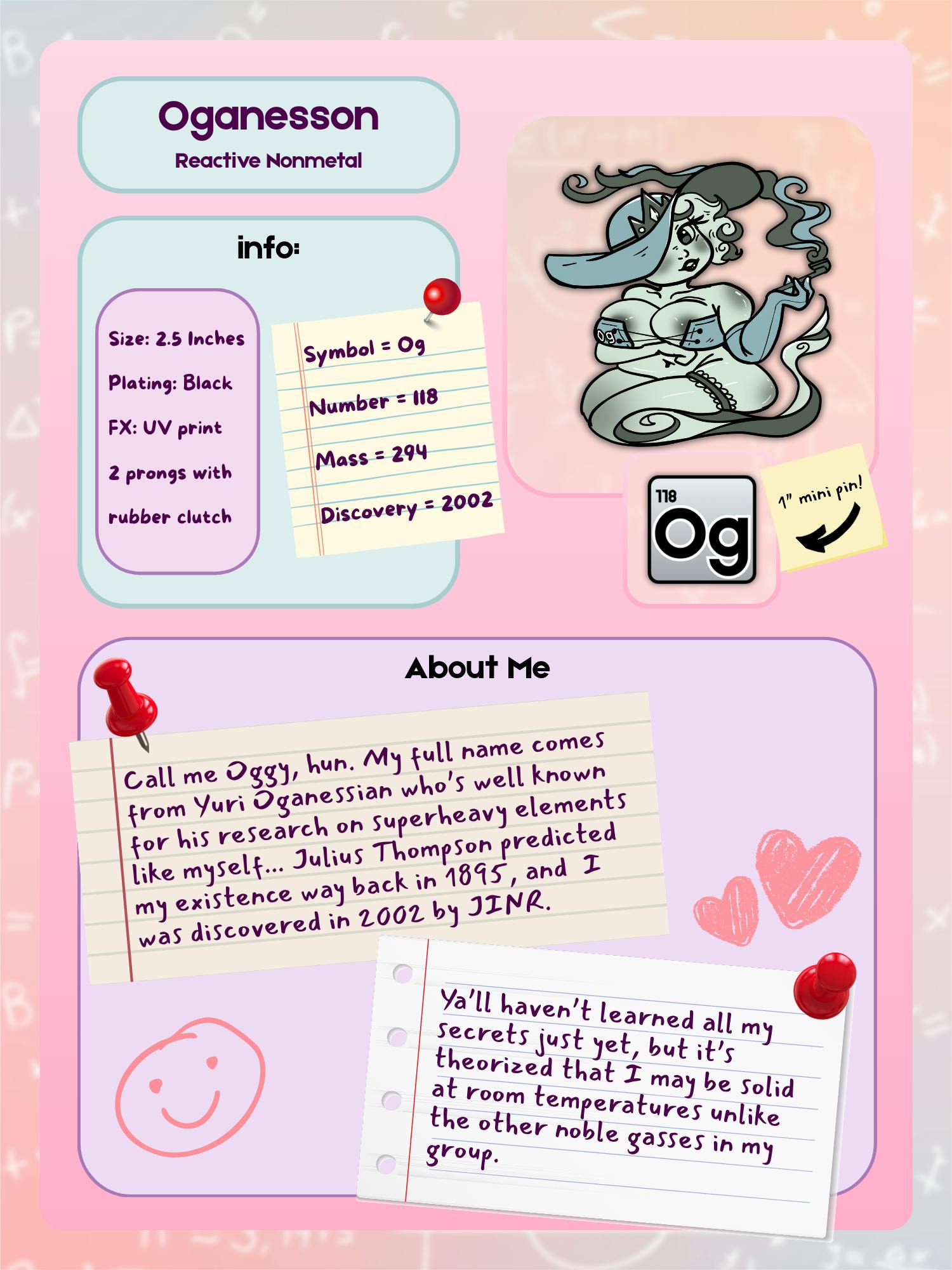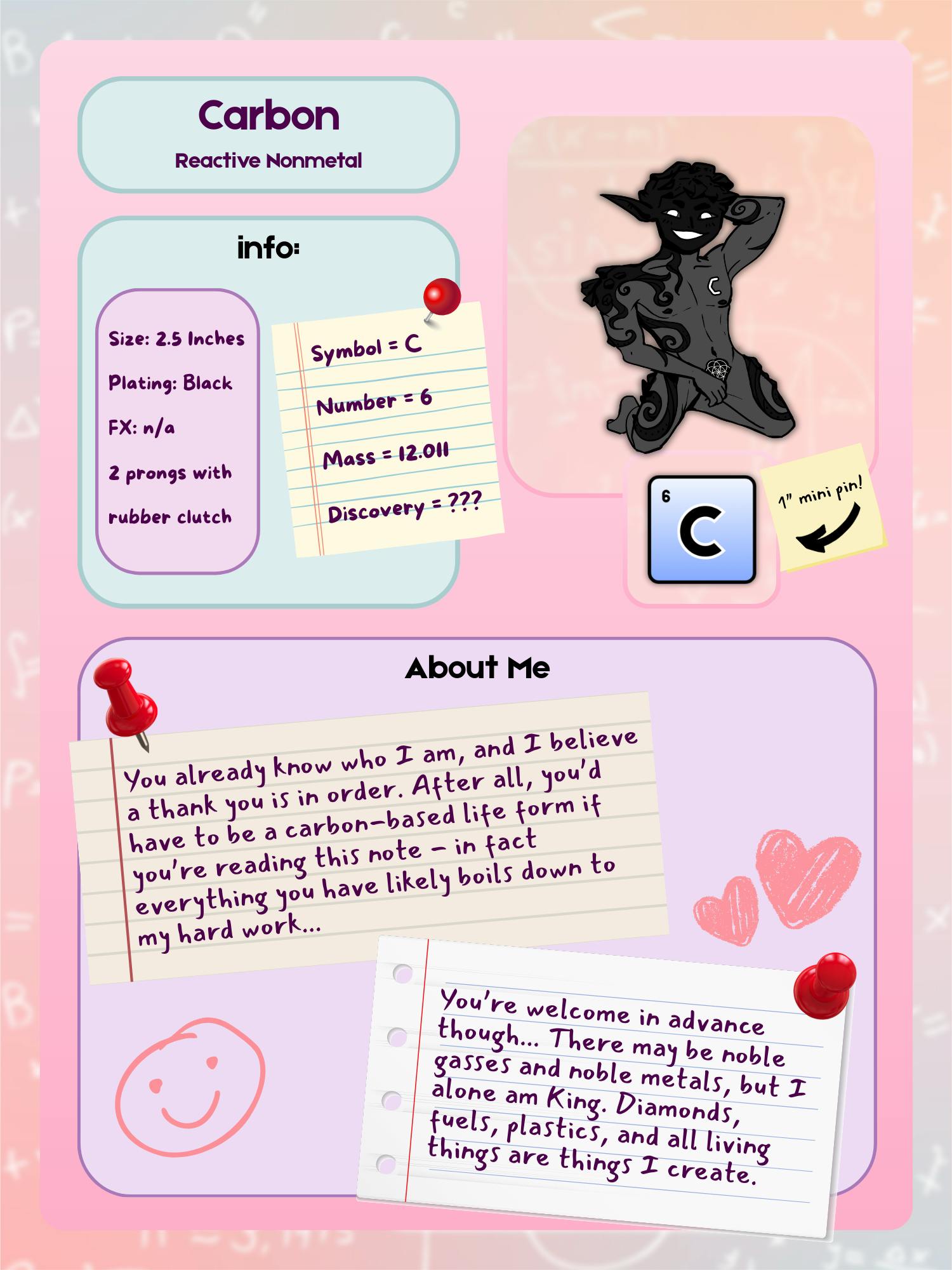 We are 15 days away from the Periodic Pinups official launch date on Valentines Day, February 14th, And today I would like to show you the next five of our elemental designs! Stay tuned for the poll as well, as your votes will help to determine which pins we place to unlock first! <3