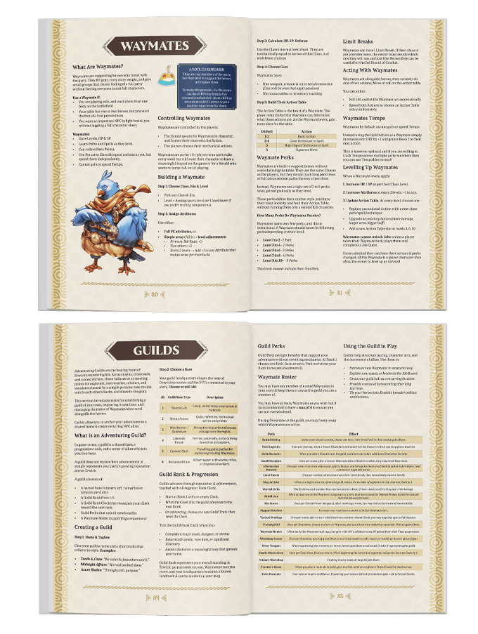 No matter if you're playing alone or need to fill up the party, you can create new characters to help you in your adventure using the Guilds & Waymate system!