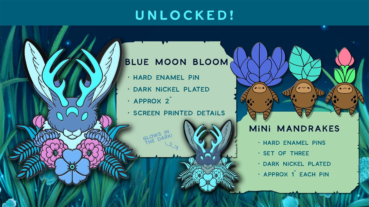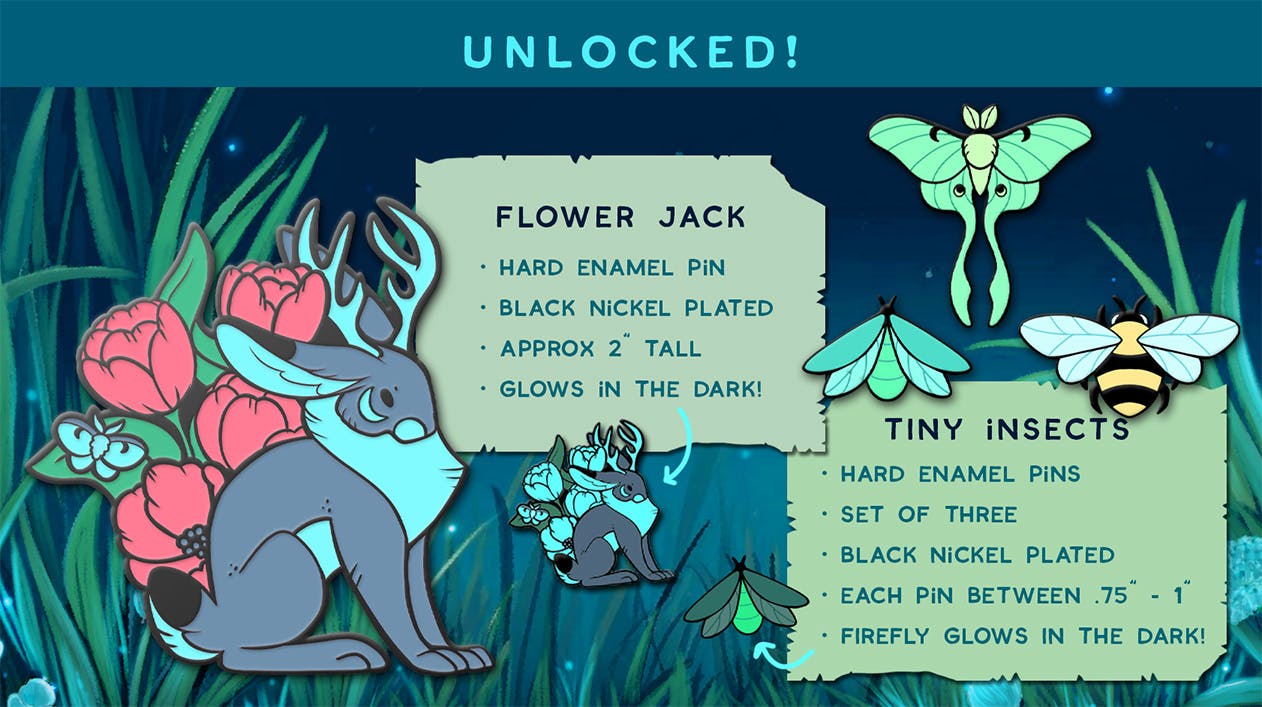 Back in 2022 I started one of my biggest adventures when I first took the big leap and created the Lunar Jackalope plushies on Kickstarter and has been growing ever since. This will now be my fourth crowdfunding campaign and my biggest enamel pin project yet! I am so excited for this collection and cannot thank you all enough for the love so far on all of my work. Thank you for supporting artists!