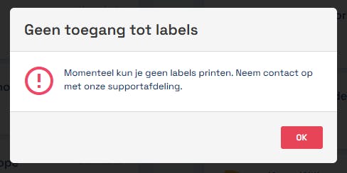 This says that momentarily I can't print shipping labels, and to contact their support department. So that's where we're at!