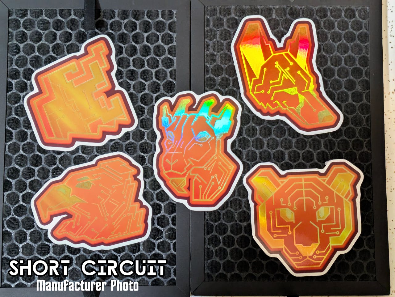 He also showed me samples of the selective holographic stickers to confirm they all looked as intended prior to bulk production. Here's the Fire Unit Line, for a peek at that: