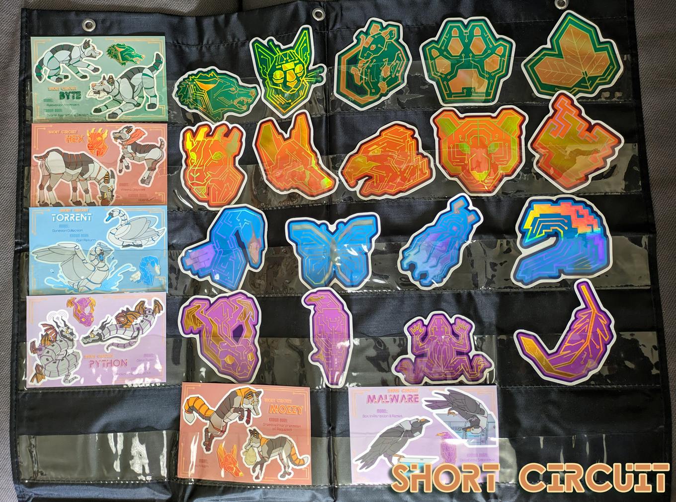 These buddies are SO gorgeous and when the light catches them just so, the holographic portions are aggressively rainbow. As you can see, they're also quite large! The more square aspect ratio designs especially so, as they're all 4" on the longest side.
