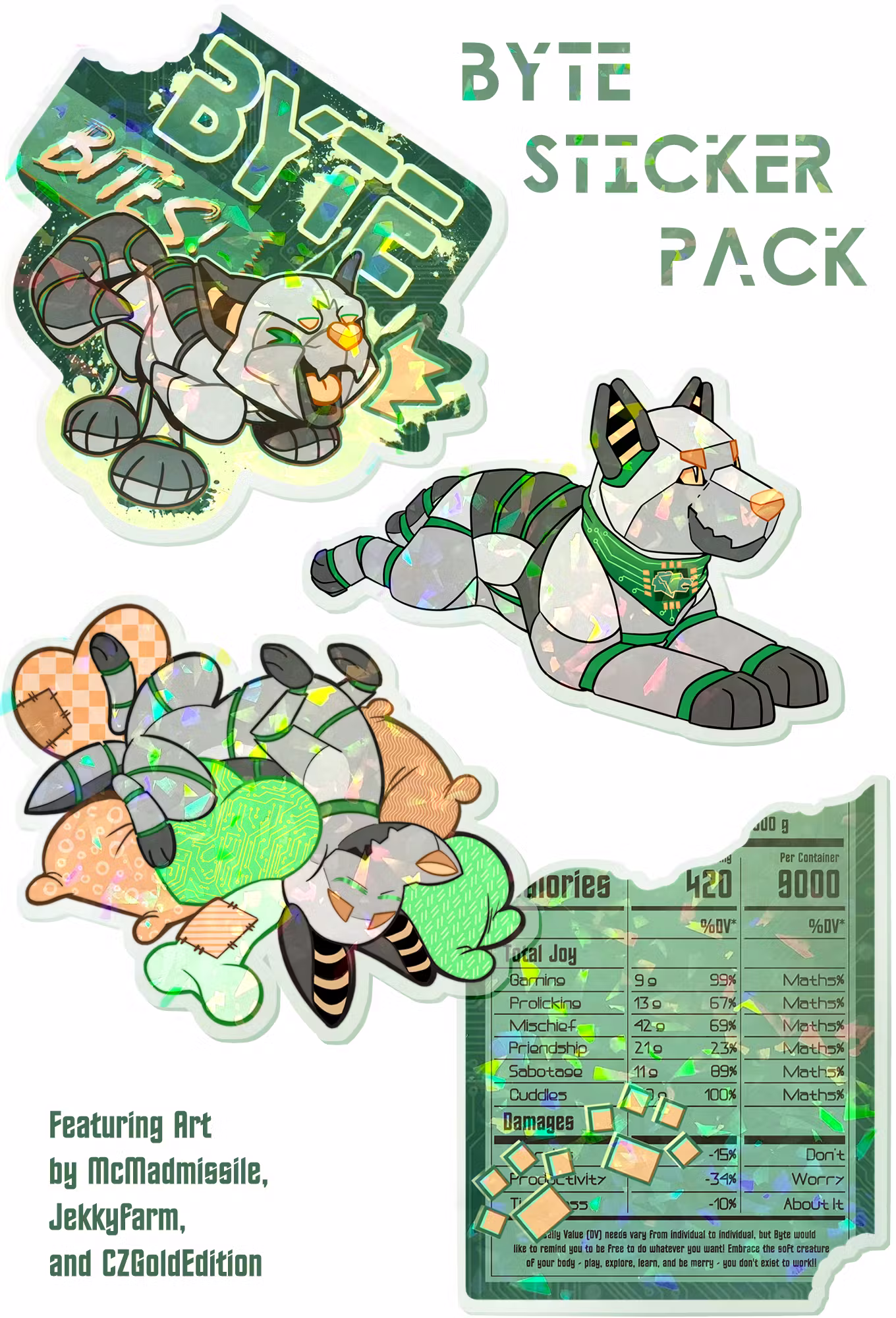 I secured our wonderful guest artists' blessings in applying their keychains to a sticker form as well, and the Byte Pack was born!