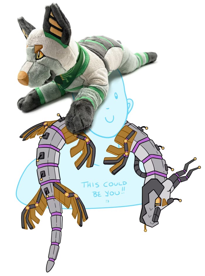 So either way, I'm determined to try for them! Due to their high unit cost (which, fair for a three foot plushie with six wings LMAO, we do be trying for the wild things, comrades), Python will retail at €80, but in whichever form we pursue I will offer them through Backerkit for a discounted €75.