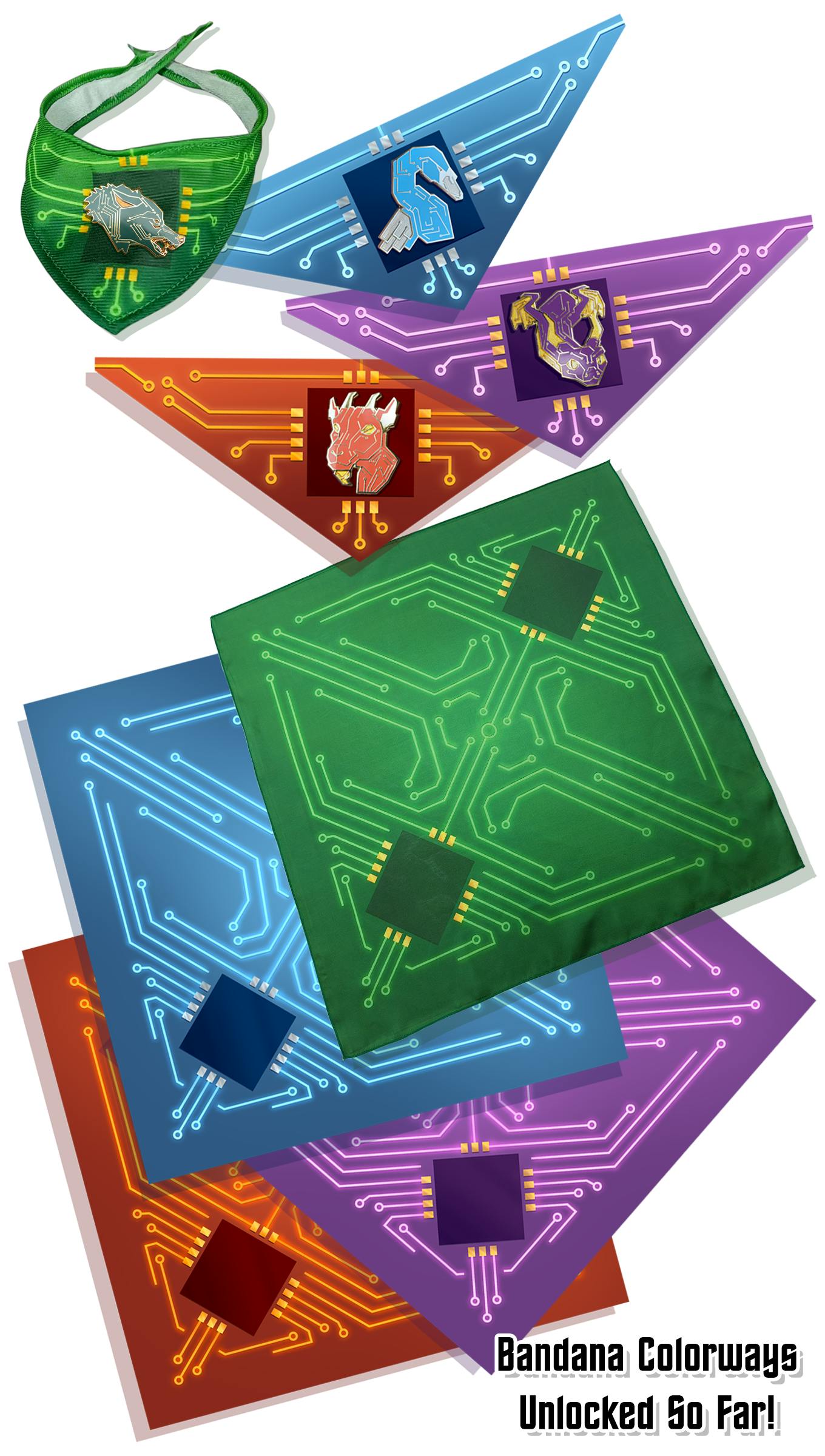 Then last night y'all snuck past the Additional Plug-In Bandana Boards goal, meaning the Fire, Water, and Air colorways have joined Earth as guaranteed choices for any pledge level or add-on involving the bandanas!