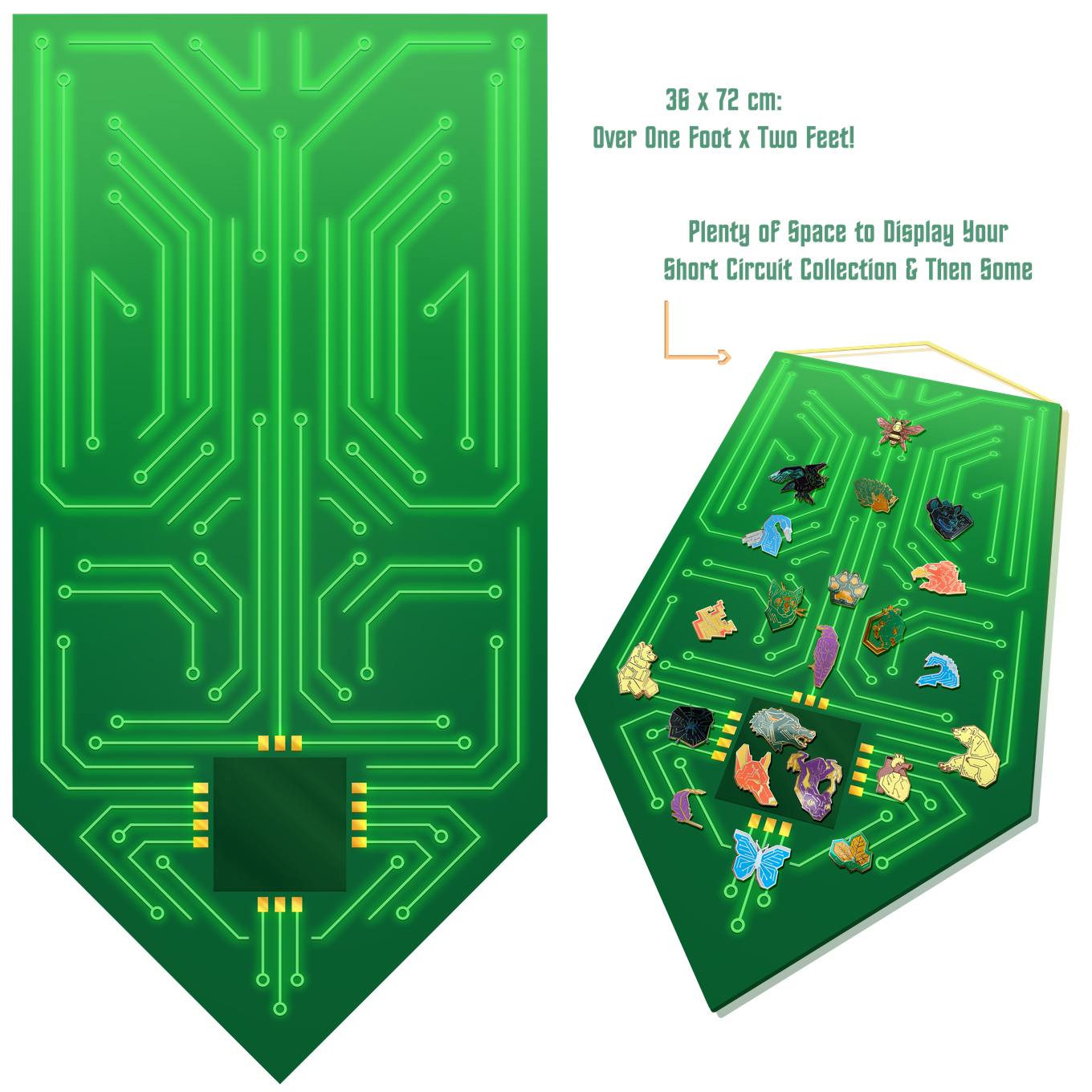 I'm thrilled to confirm that they can produce the custom size I had mocked up: 36 cm (14.17") wide x 72 cm (28.35") tall. This should not only comfortably accommodate the full Short Circuit collection and then some, but it's large while not so long as to be unwieldly, and wider than many standard banner dimensions, providing plenty of room to compose a nice flow with your pins.