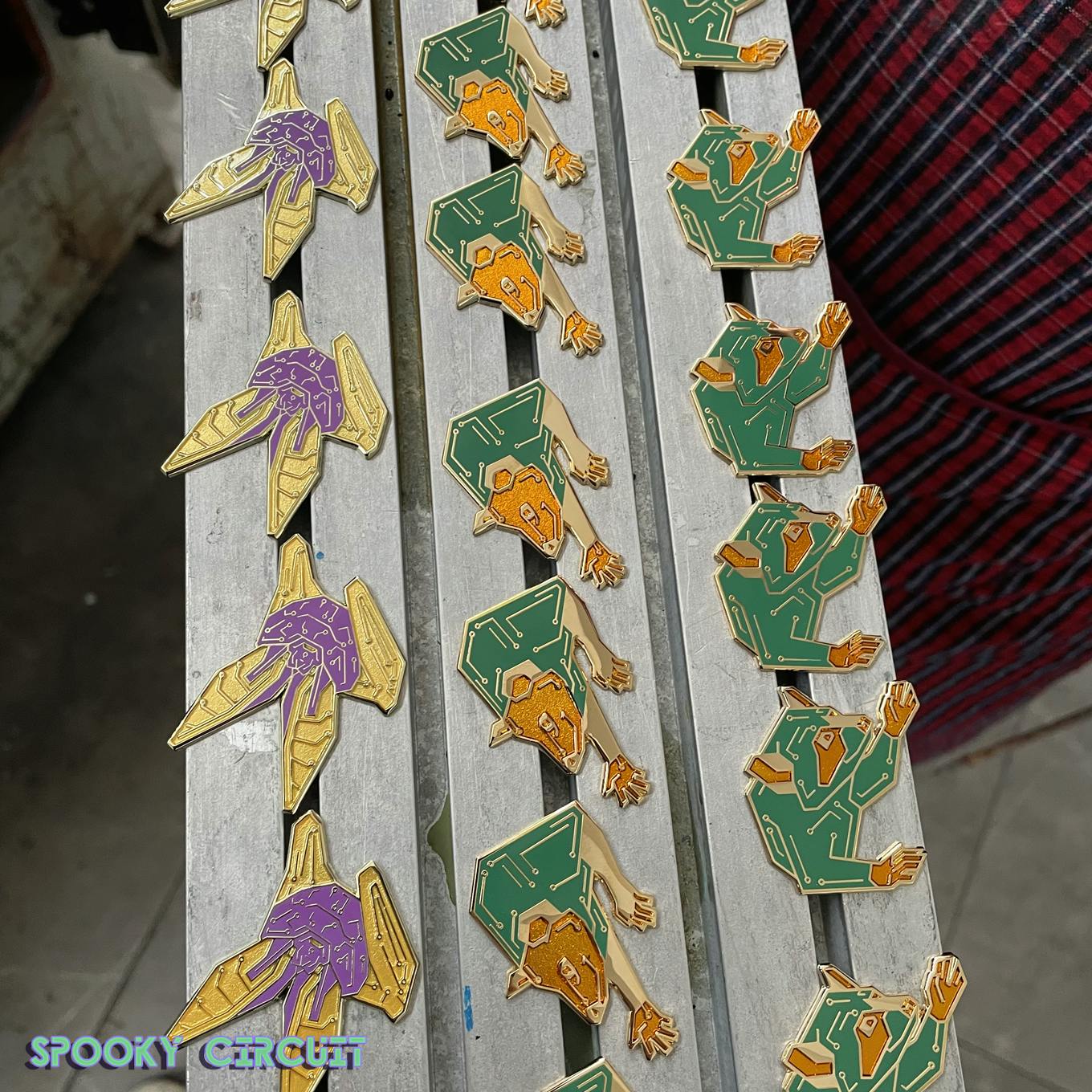 As of last week, the remainder of the pin samples for Spooky Circuit are officially underway! We already have established pantones for all the Unit Lines involved, so there shouldn't be any surprises, but it's important to me that you get to see each design with the transparency + recessed metal effect before locking down surveys.
