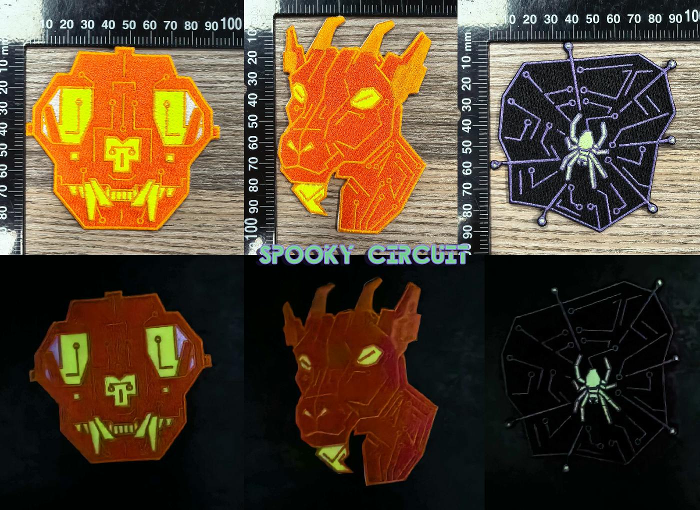 All of the embroidered patches!! The remade glow-in-the-dark designs are from the manufacturer since the new samples haven't reached me in person, so they look a little scrunglier - as factory photos tend to - but they should give you a solid sense of the adjusted threads.