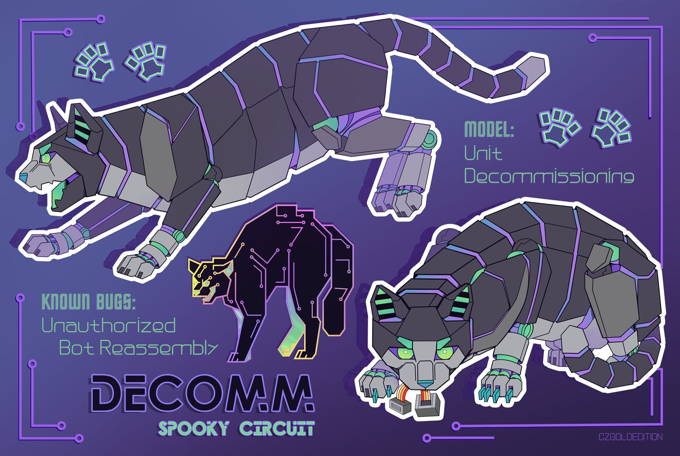 The robots, bot-boards, paw/foot prints, and text will all be useable, kiss-cut stickers. :D