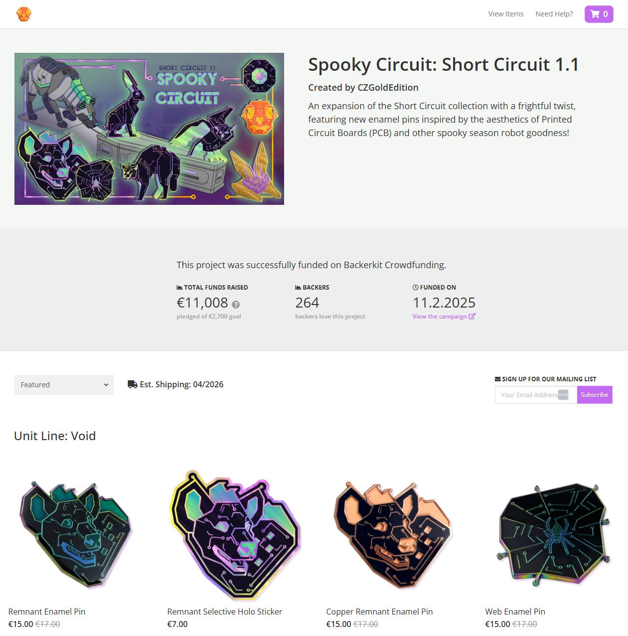 Thanks to BackerKit's shiny new Tariff Manager, everything is now also set up to pre-apply tariff costs to US backers' shipping costs. This will be 15% of the physical value of your items - which, as stated across my campaign, is only a portion of their total costs, as every pin, sticker, and patch purchase is bundled with a digital artwork file featuring that design. The digital files will be emailed to backers closer to fulfillment time, and will take the form of some circuit-woven desktop and phone wallpapers featuring your chosen designs.