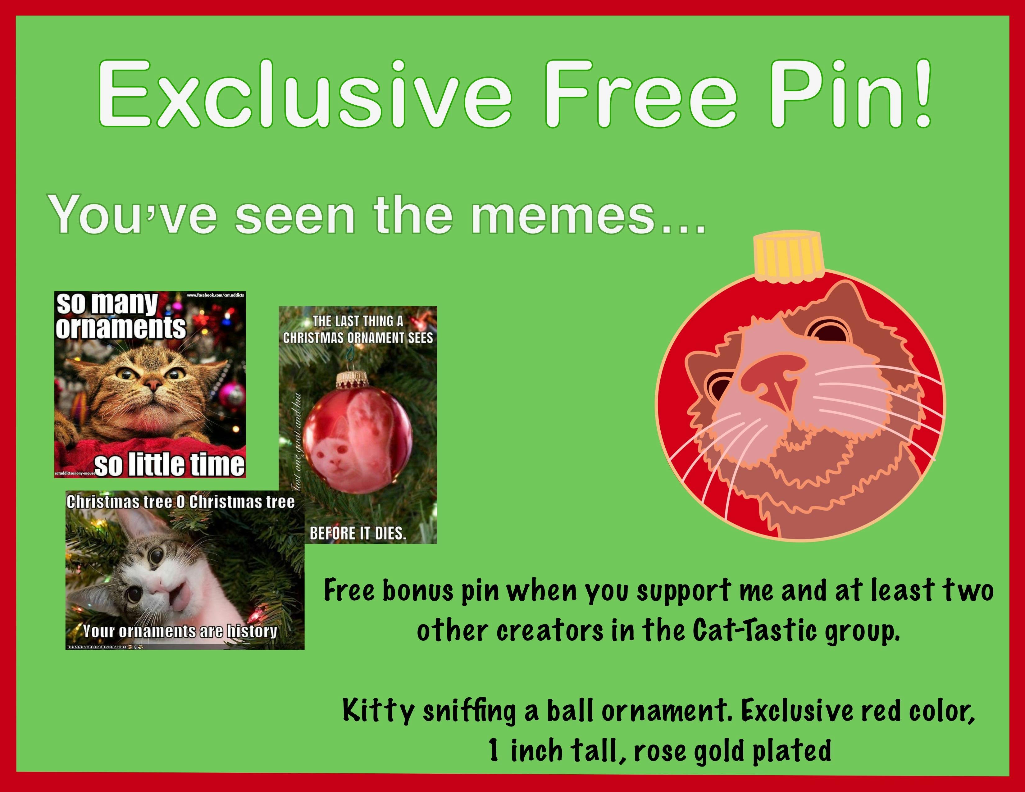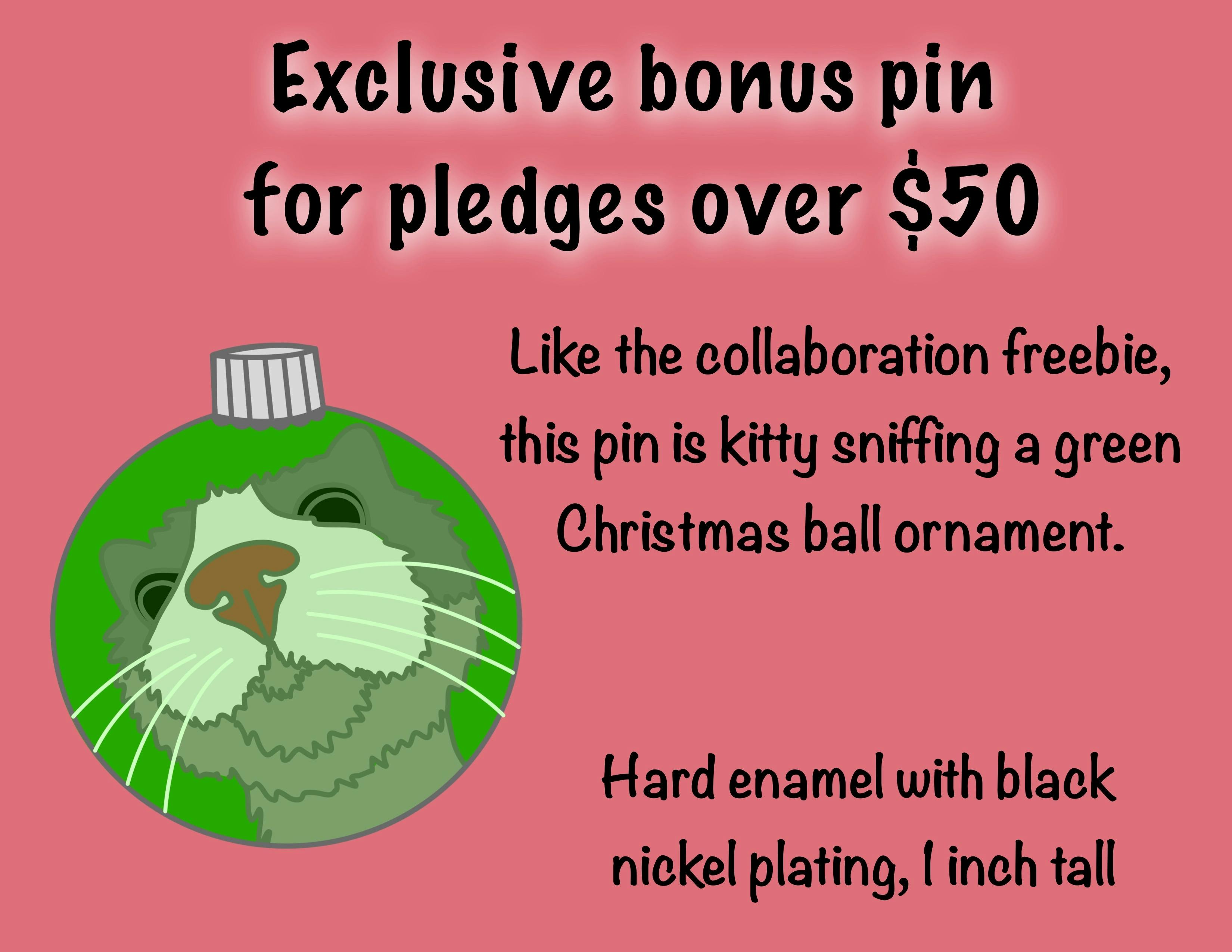 Backers pledging over $50 You will receive a free green Kitty Reflection ornament mini pin Manufacturing I will be using a pin manufacturer I have used before. Occasionally things happen and there are minor delays in manufacturing.