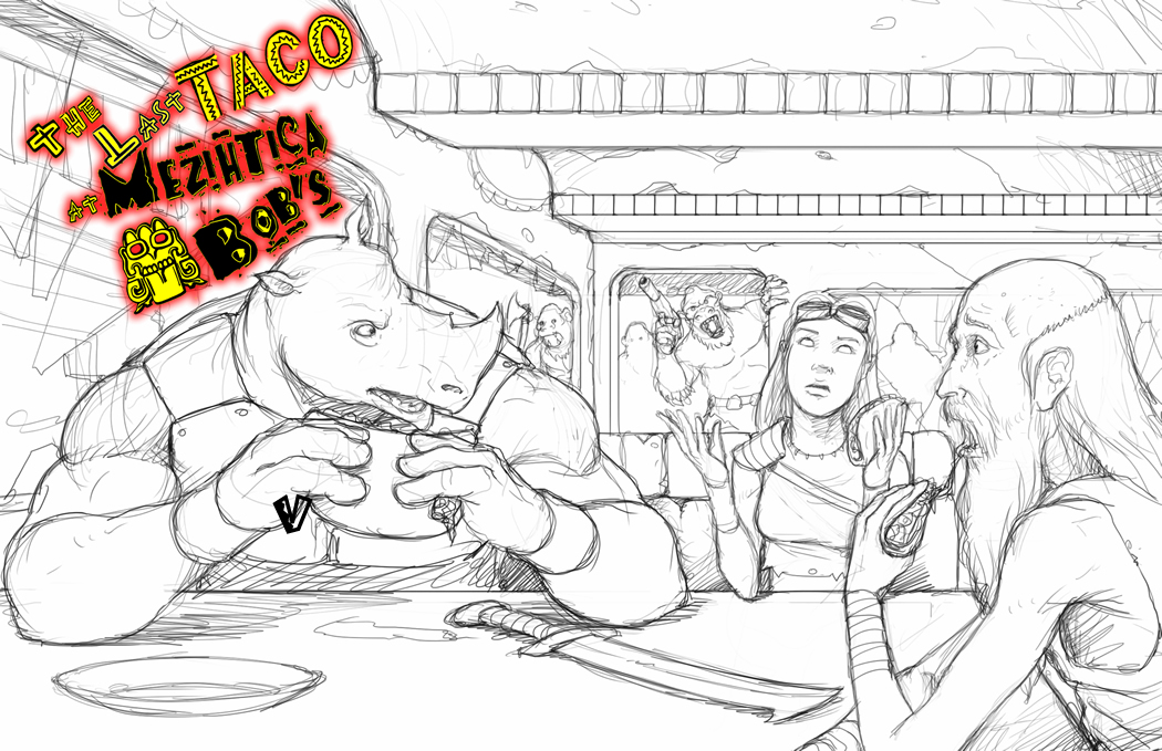 *I'm also getting a "con-exclusive" MCC module together for this con season called, "The Last Taco at Mezihtica Bob's." For those that I won't see at cons this year, I will probably offer it as an add-on with later projects... Here's some early artwork for it: