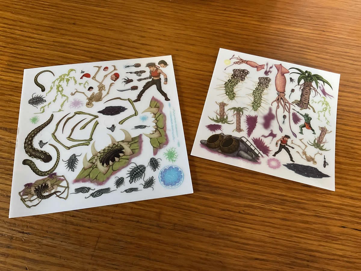 A second (unique) sheet of cling stickers will be added (for deluxe backers)! PDF backers will benefit a bit too, because I use those stickers to build the cover that is on the PDF file...