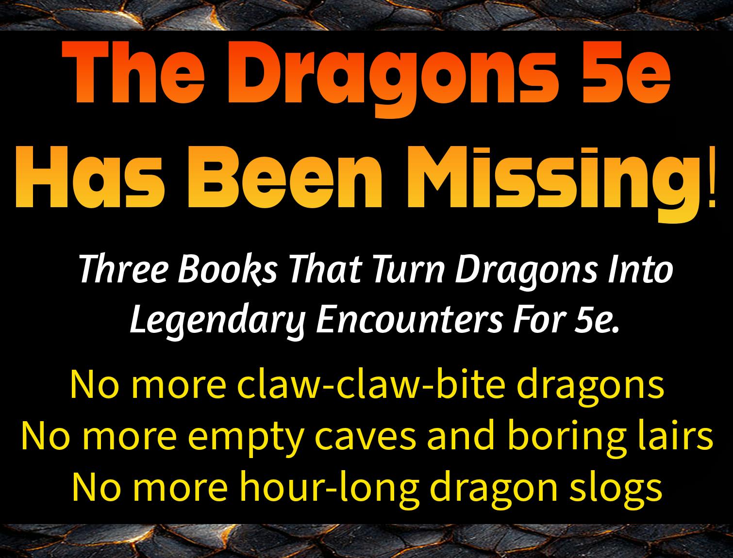 Stop throwing bags of hit points at your players and pretending they're "dragons". Dragons should be the moments your players remember years later. Dragons! Dragons! Dragons! exists to make those moments happen.
