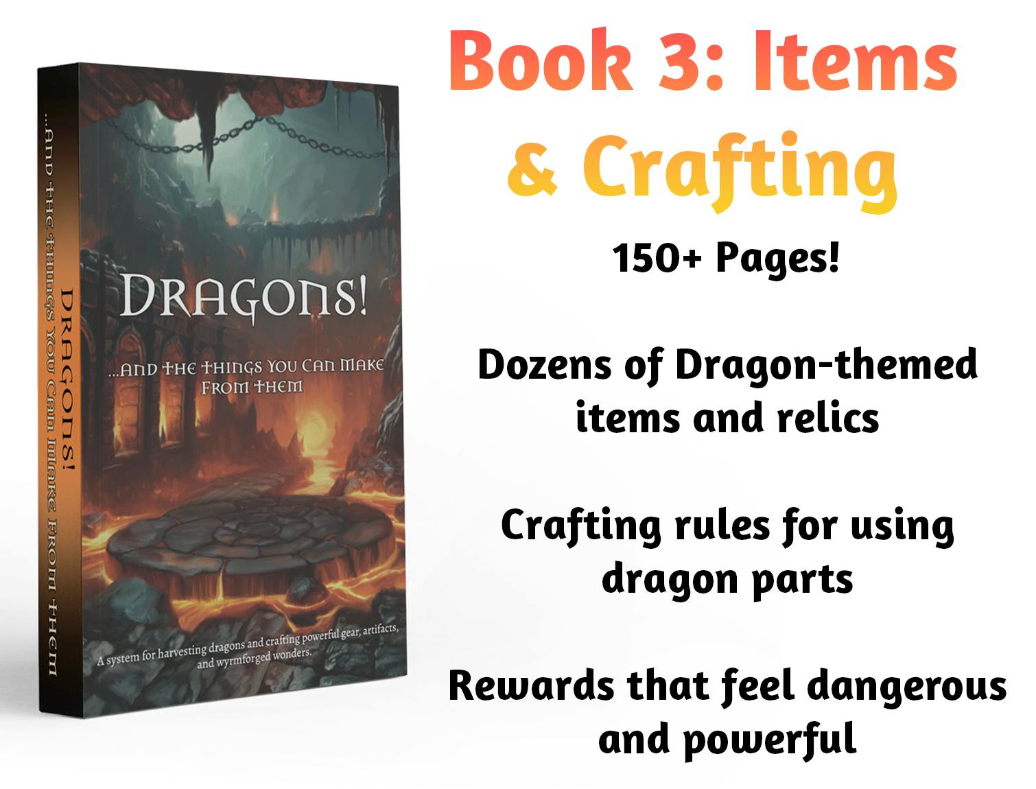 Hardcover and PDF of the equipment and crafting book, Dragons! ...and the Things You Can Make From Them.