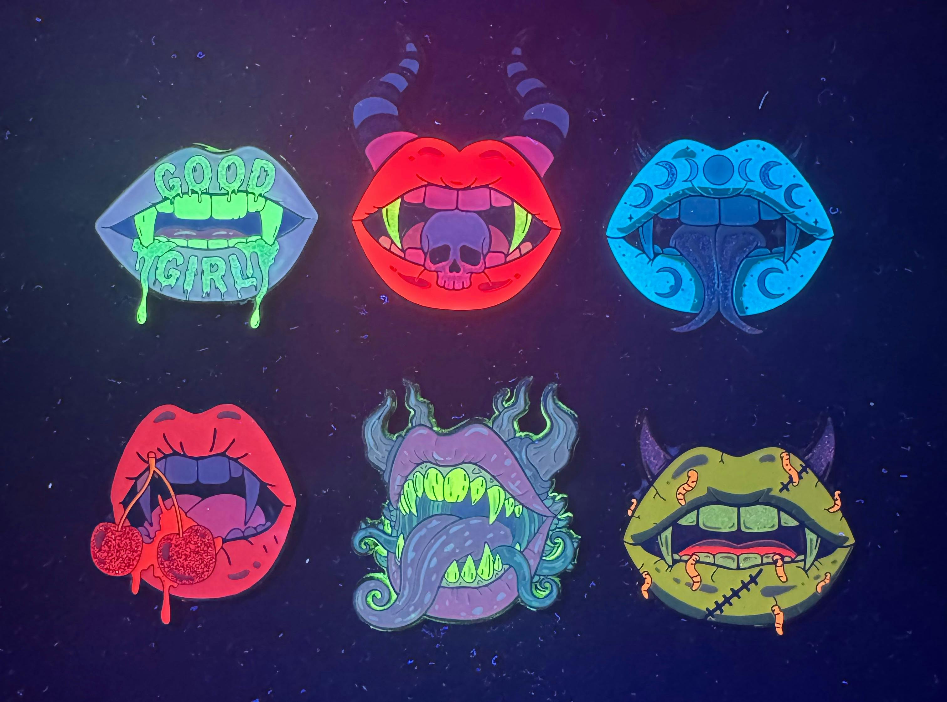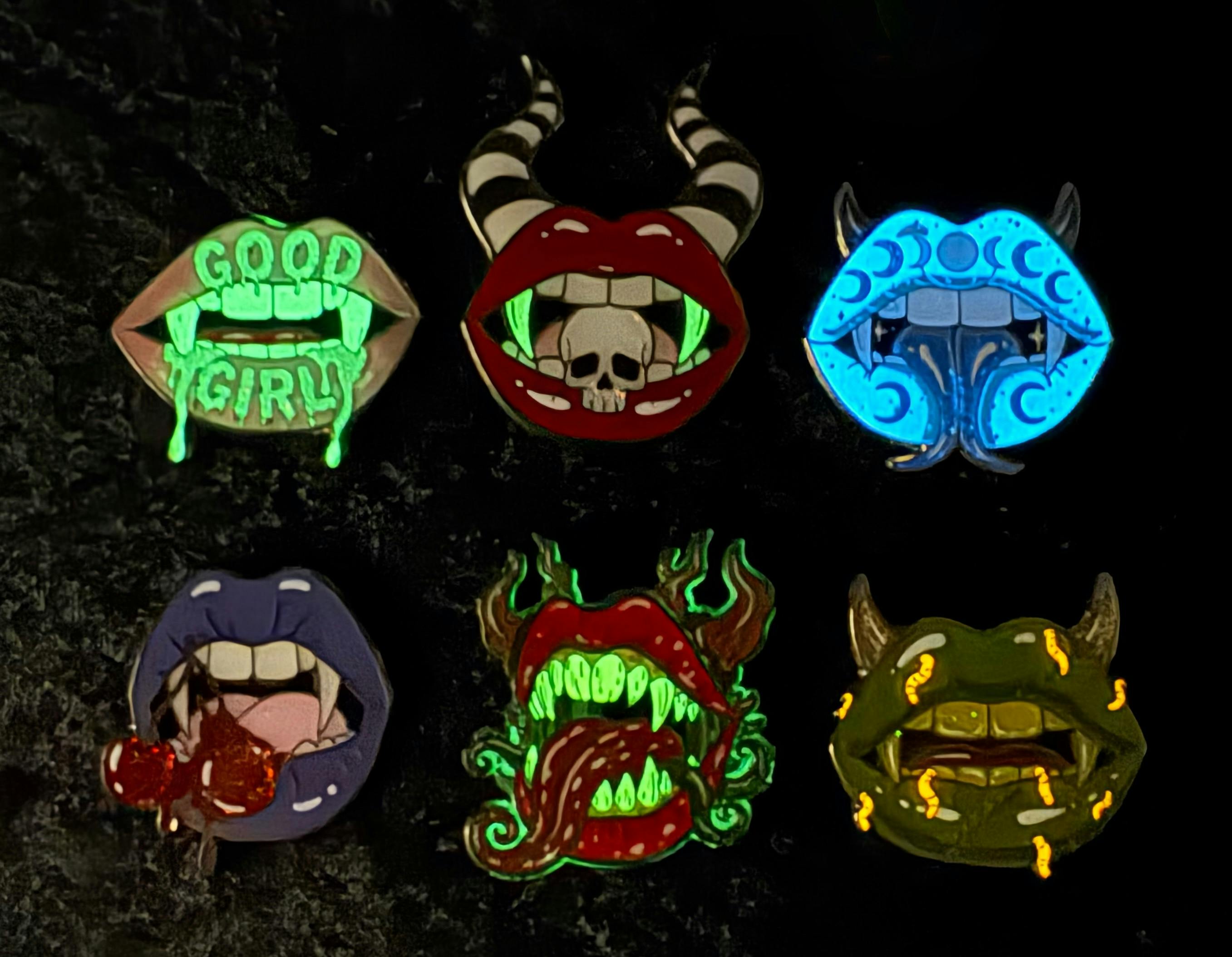 🔥 The Collection: The Monsters and Their Cursed Kisses I have designed a core set of 6 designs. Each of these pins are packed with detail! Stunning glitter, UV, and glow in the dark paint features!