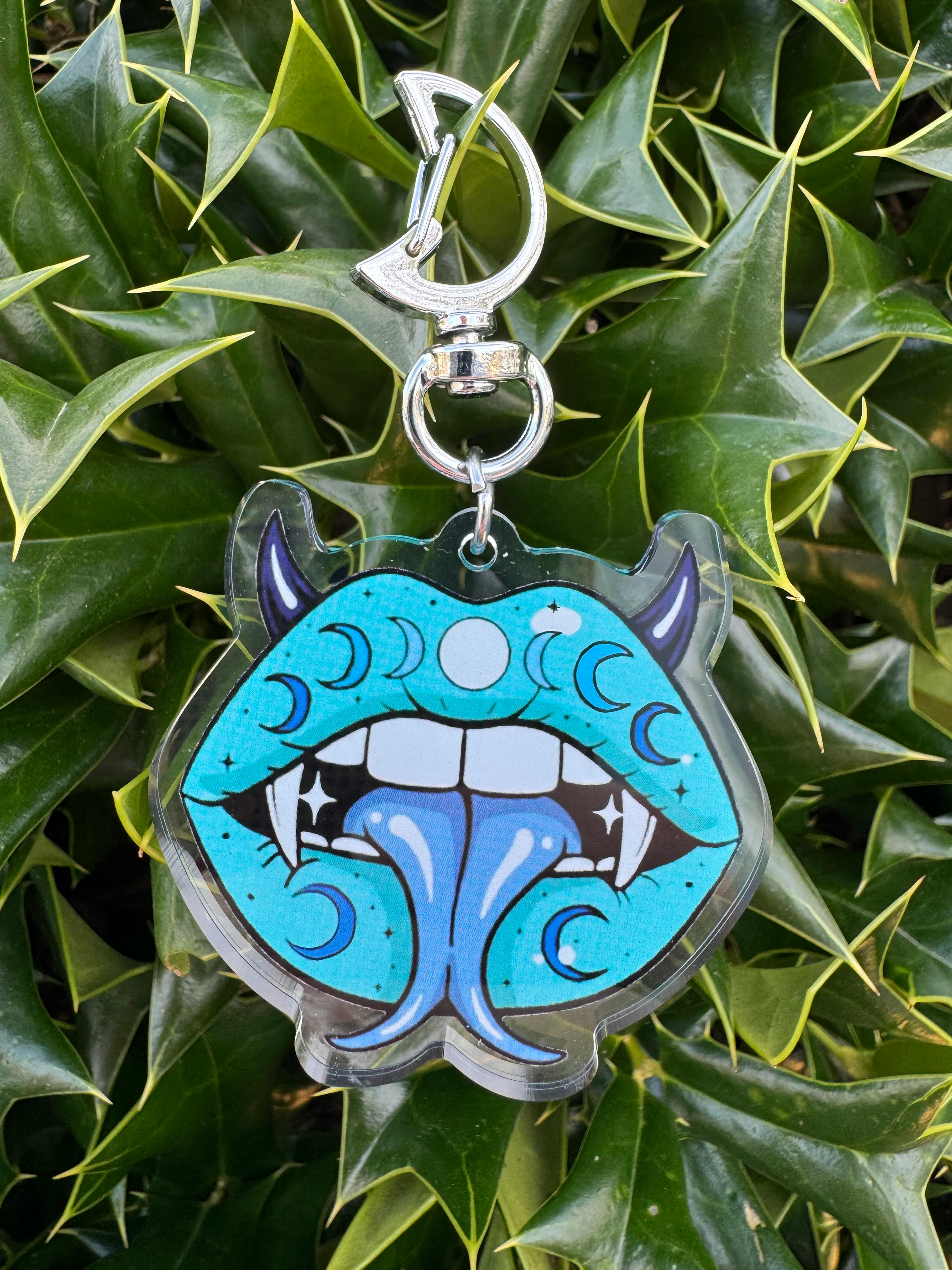 This acrylic keychain is double sided design featuring our moon phase lips!