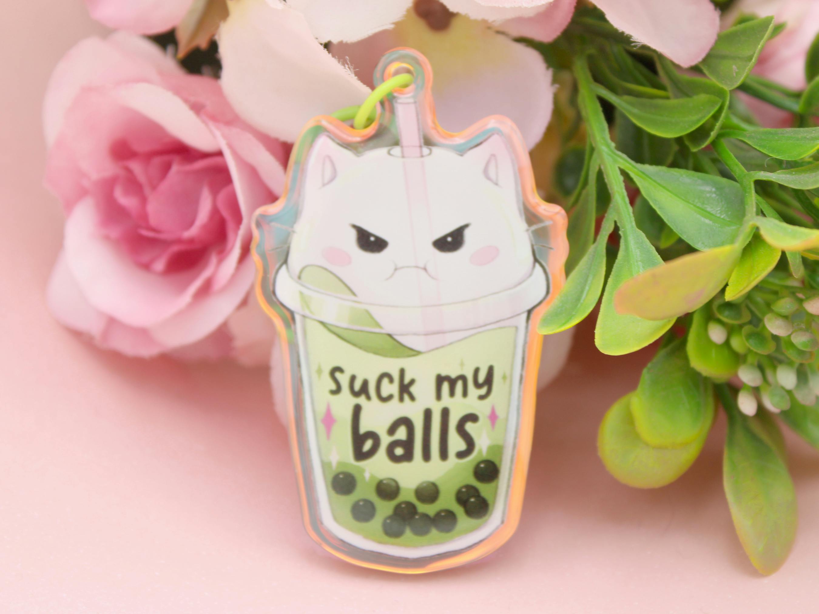An older but still beloved tea-themed collection: tea cups with strange symbols associated with the occult. One comes with the sigil of satan, one with Solomon's seal and one with a pentagram, and each has a slightly different overall decoration - with eyeballs, with flowers, cookies... These are not pins (yet? Let me know if you'd be interested!) but I have them as super unhinged stickerbooks, a postcard set, lanyards, a holo sticker and sticker sheet.
